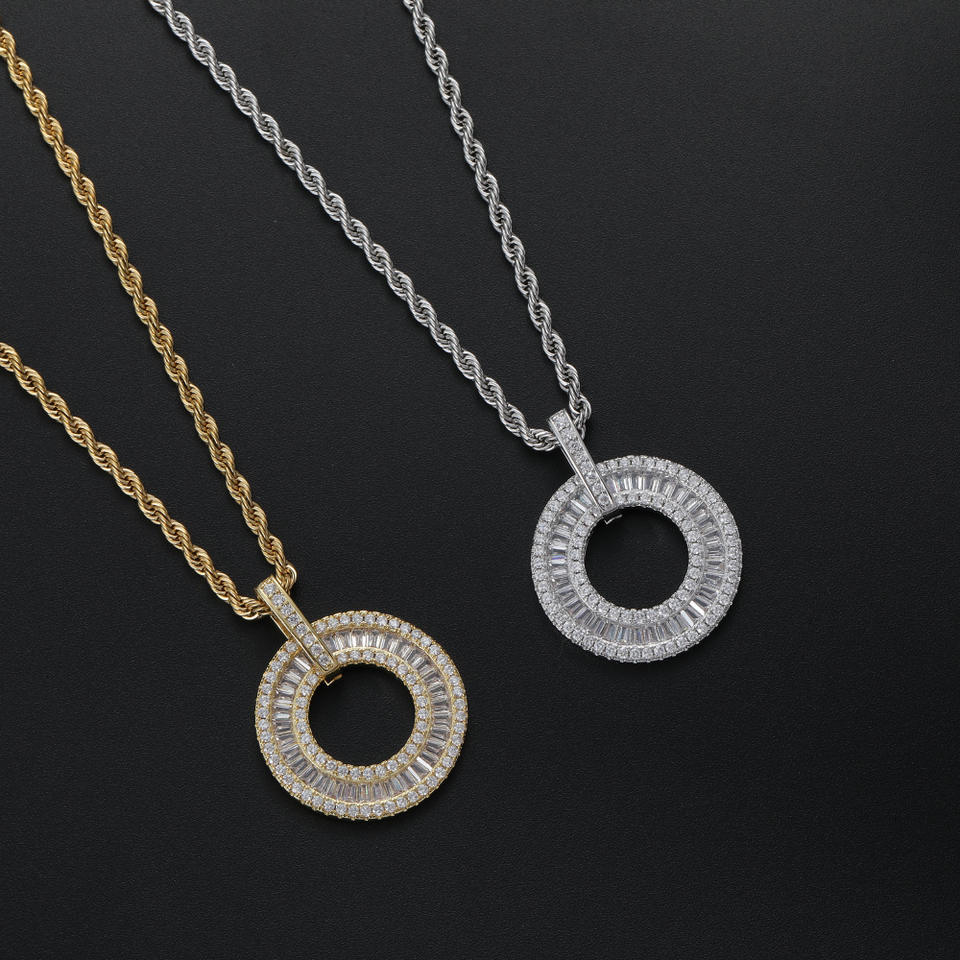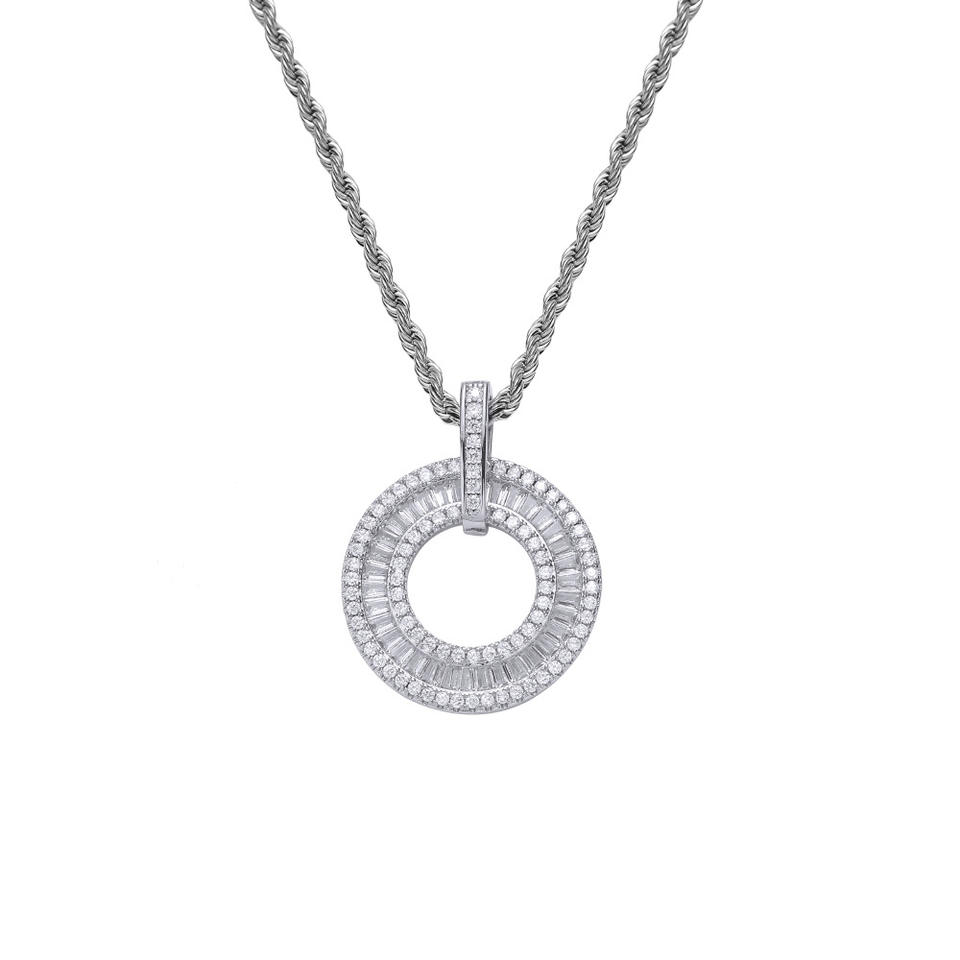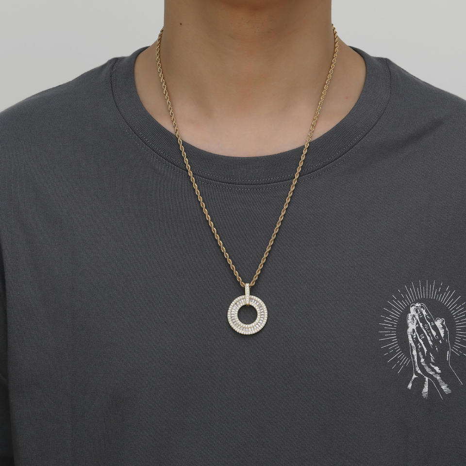 Semplice ciondolo rotondo a doppio cerchio, collana da uomo di tendenza con personalità e stile.