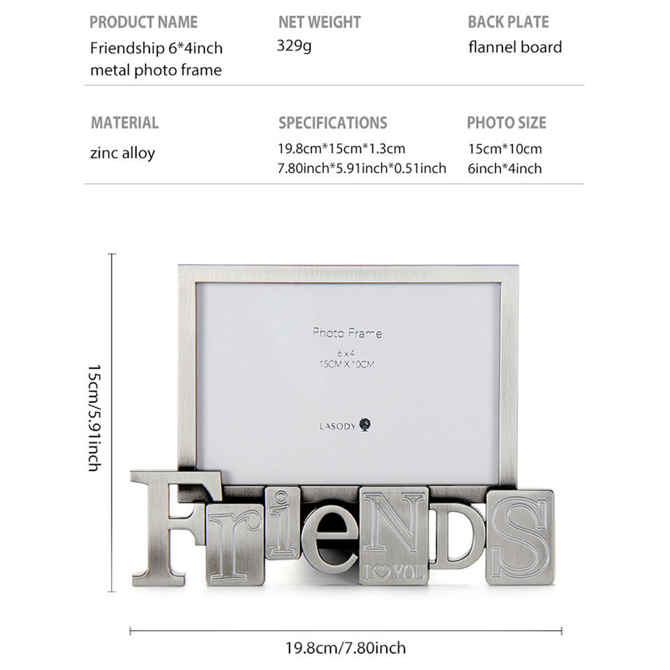 Materiale in lega di zinco dallo stile semplice, cornice portafoto creativa per regali di compleanno per amiche e sorelle, marchio personalizzato LASODY