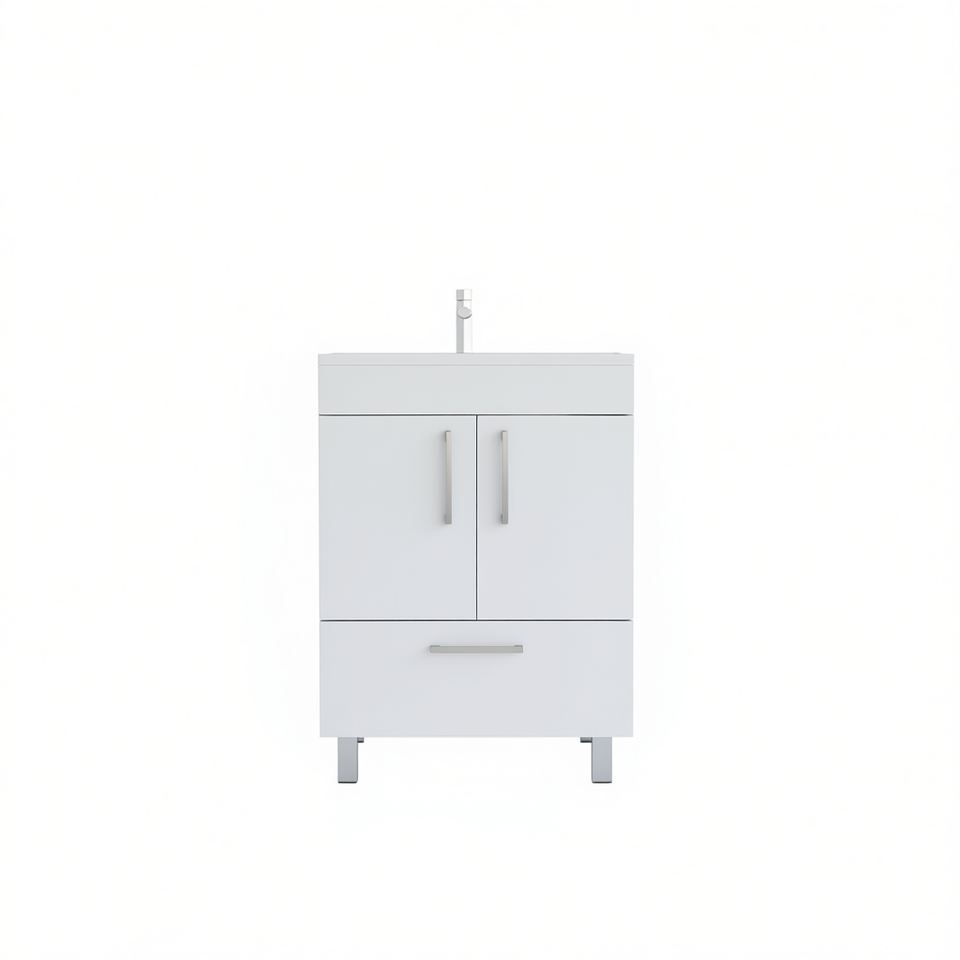 Mobile Bagno Rettangolare Bianco a 2 Ante, Design Moderno Minimalista, Lavabo in Ceramica, Finitura Verniciata in MDF