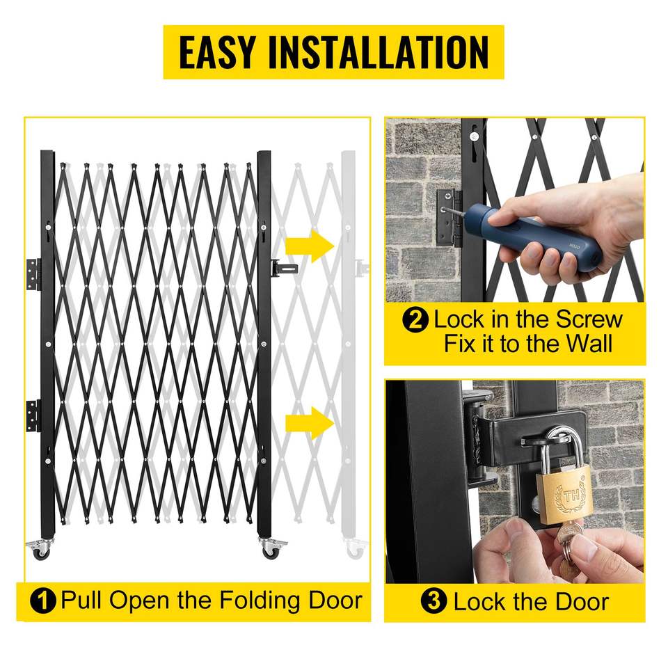 Cancello di Sicurezza Pieghevole in Acciaio a Fisarmonica, 2,13 m di Altezza x 2,13 m di Larghezza, Porta Espandibile Flessibile, Facile da Usare, Versatile e Sicuro