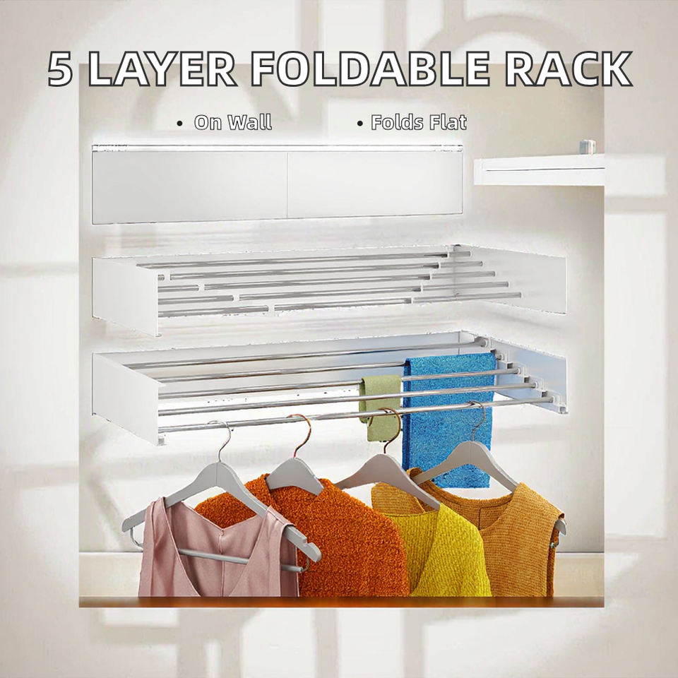 Stendibiancheria singolo pieghevole e rimovibile in alluminio a 5 livelli 80/40, montabile a parete, salvaspazio per soggiorno, bagno, scarpe