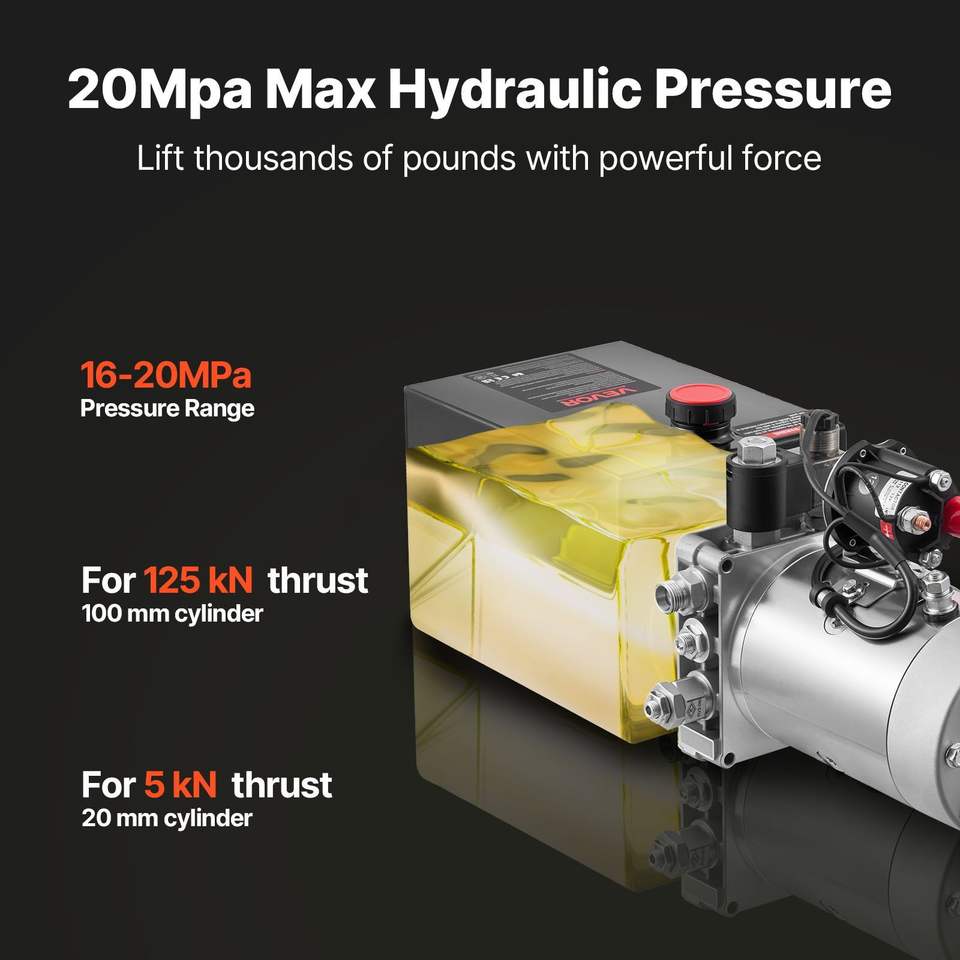 Centralina Idraulica a Singolo Effetto per Autocarri Ribaltabili, 6 Litri, Pressione Massima 3200 PSI, Portata 0.91 GPM, 12V DC, Hydr 6 Dump