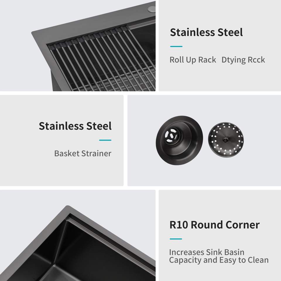 Single Bowl 16 Gauge Stainless Steel Undermount Kitchen Sink Workstation Sink in Brushed Nickel/Gunmetal Black