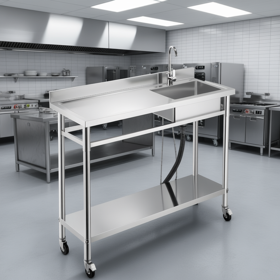 Lavello Commerciale per Cucina Professionale 47.2 X 19.7 in Acciaio Inox con Banco da Lavoro Mobile e Rubinetto