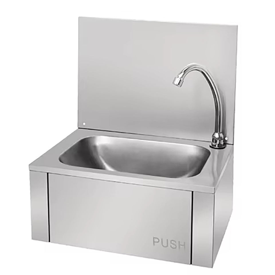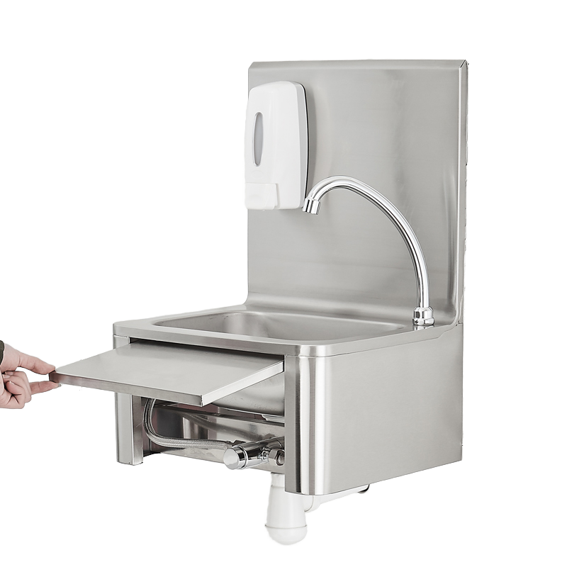 Lavello in acciaio inossidabile con apertura a ginocchio a ciotola singola con rubinetto e Backsplash Design stabile con configurazione a un foro
