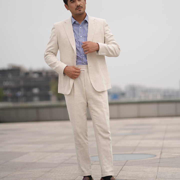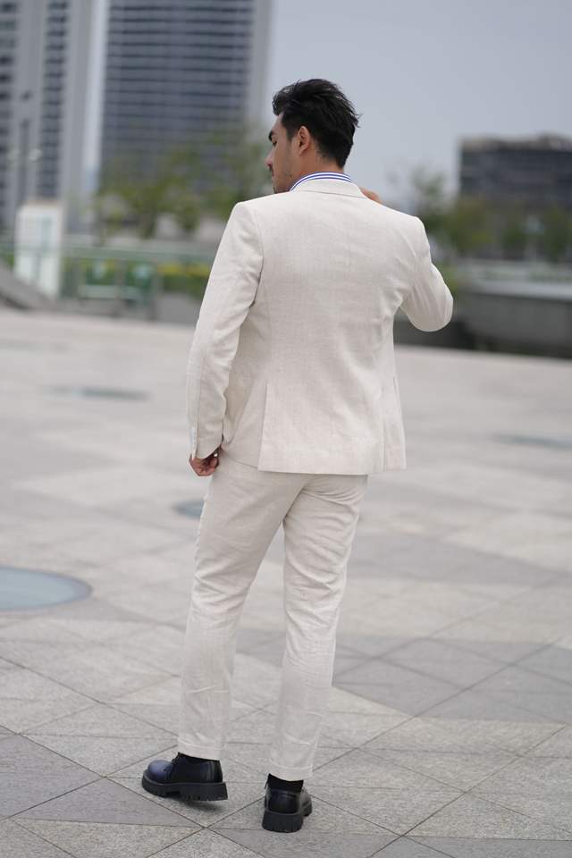Single Breasted Bespoke White BEIGE Linen Herringbone Wedding Suit for Man Tuxedo Blazers for Groom Casual Slim Fit Suits
