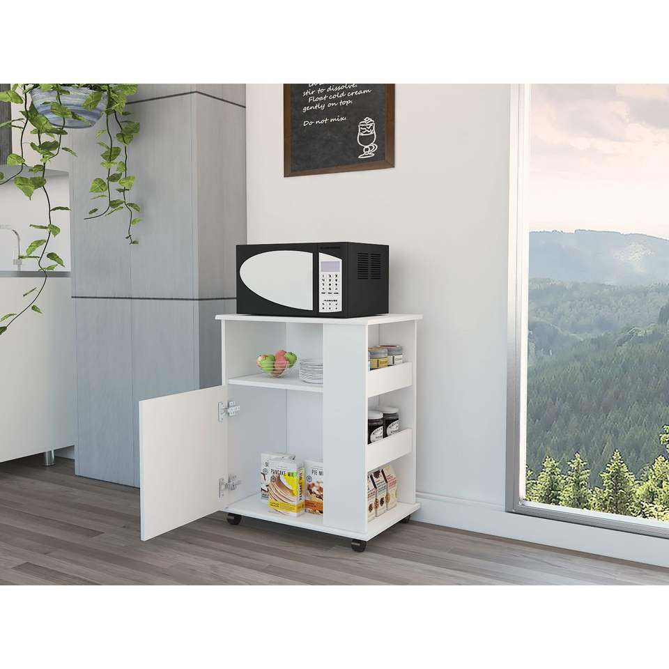 Mobiletto Inferiore per Microonde a Porta Singola con Tre Ripiani Laterali, Kit Bianco per Isole e Carrelli da Cucina