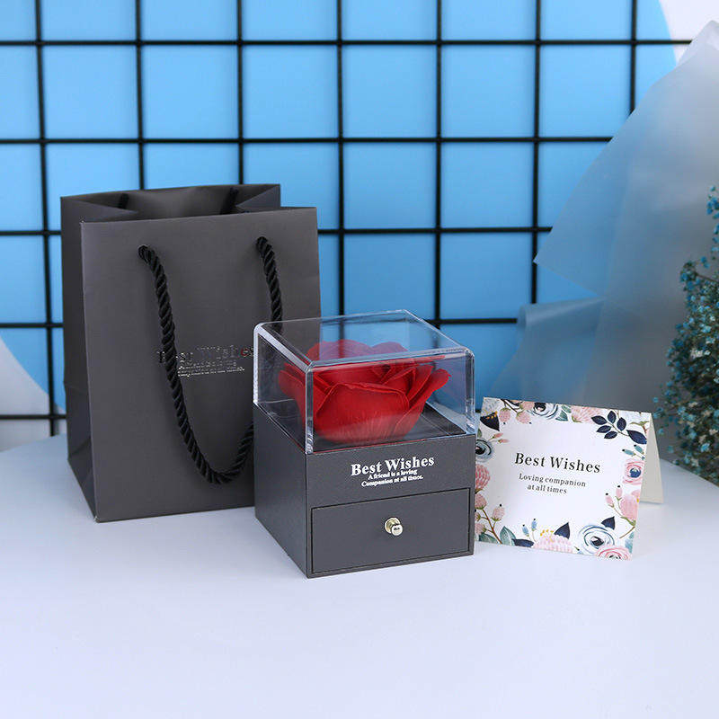 Single Eternal Rose Flower Drawer Acrylic Necklace Bracelet Custom Logo Gift Jewelry Box For Valentine's Day Women Girl