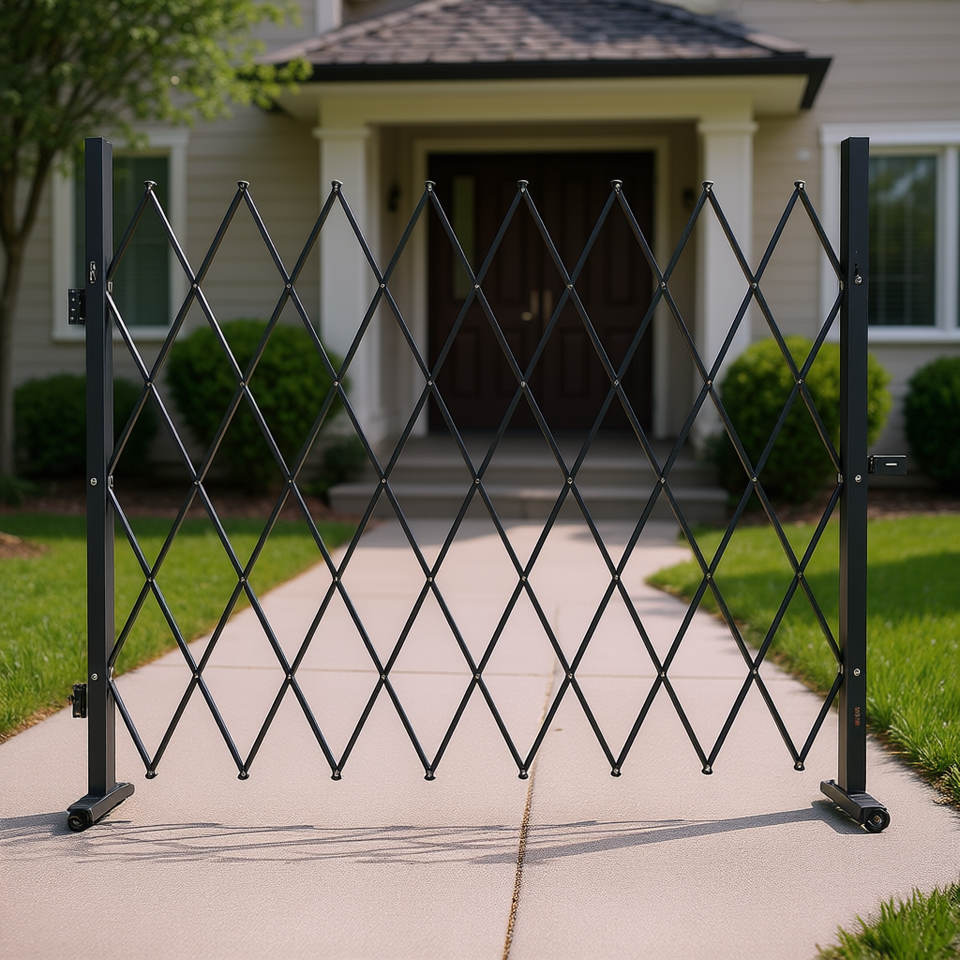 Cancello a Forbice Pieghevole in Acciaio, Barriera Retrattile per Esterni, Bloccabile, Controllo Manuale, Facile Installazione, Verniciatura a Polvere, Uso Industriale