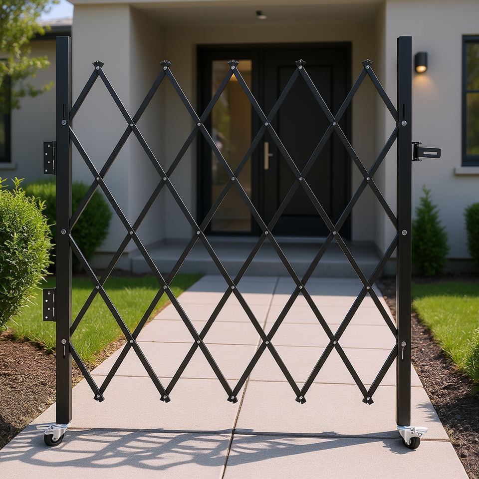 Cancello di Sicurezza Pieghevole in Acciaio a Fisarmonica 61 x 71 Pollici, Retrattile con Controllo Manuale per Garage e Capanno