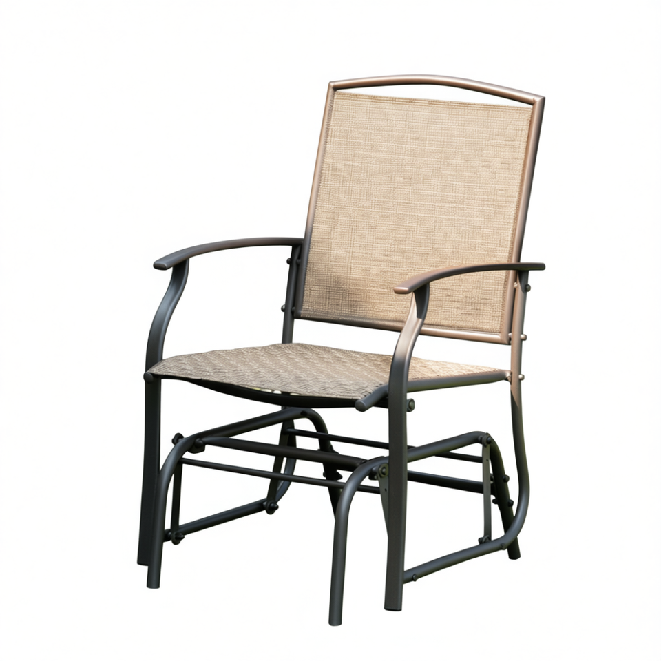 Outdoor Steel Glider Chair With Polyester Fabric Garden Swing Seating Contemporary Design Brown Color