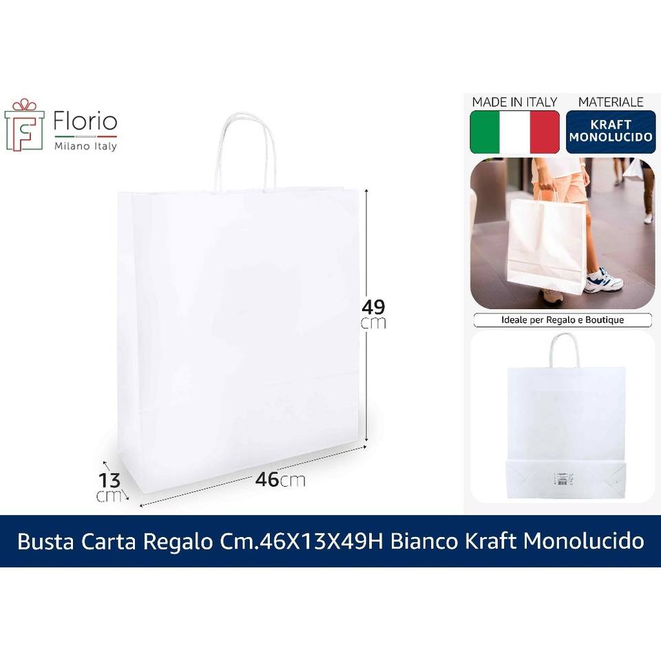 Busta Regalo in Carta Kraft Bianca Lucida Singola CM.46X13X49h per Sacchetti Regalo