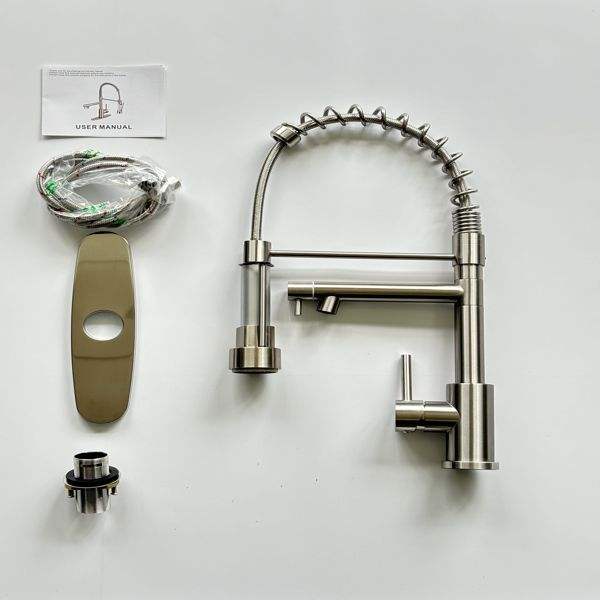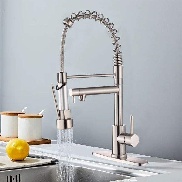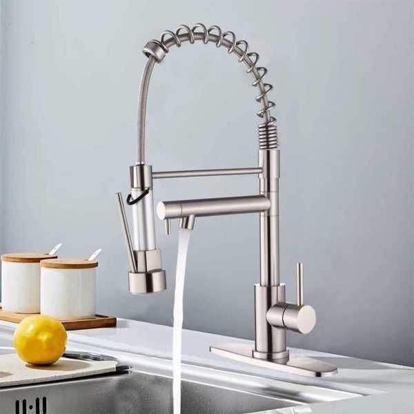 Rubinetto da cucina monocomando a 2 funzioni in acciaio inossidabile con collo a molla e doccetta estraibile, facile installazione a foro singolo, per lavabo