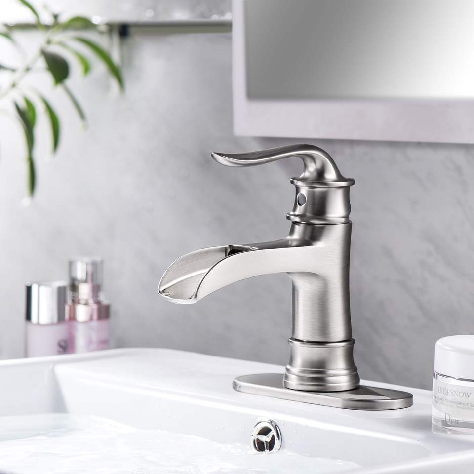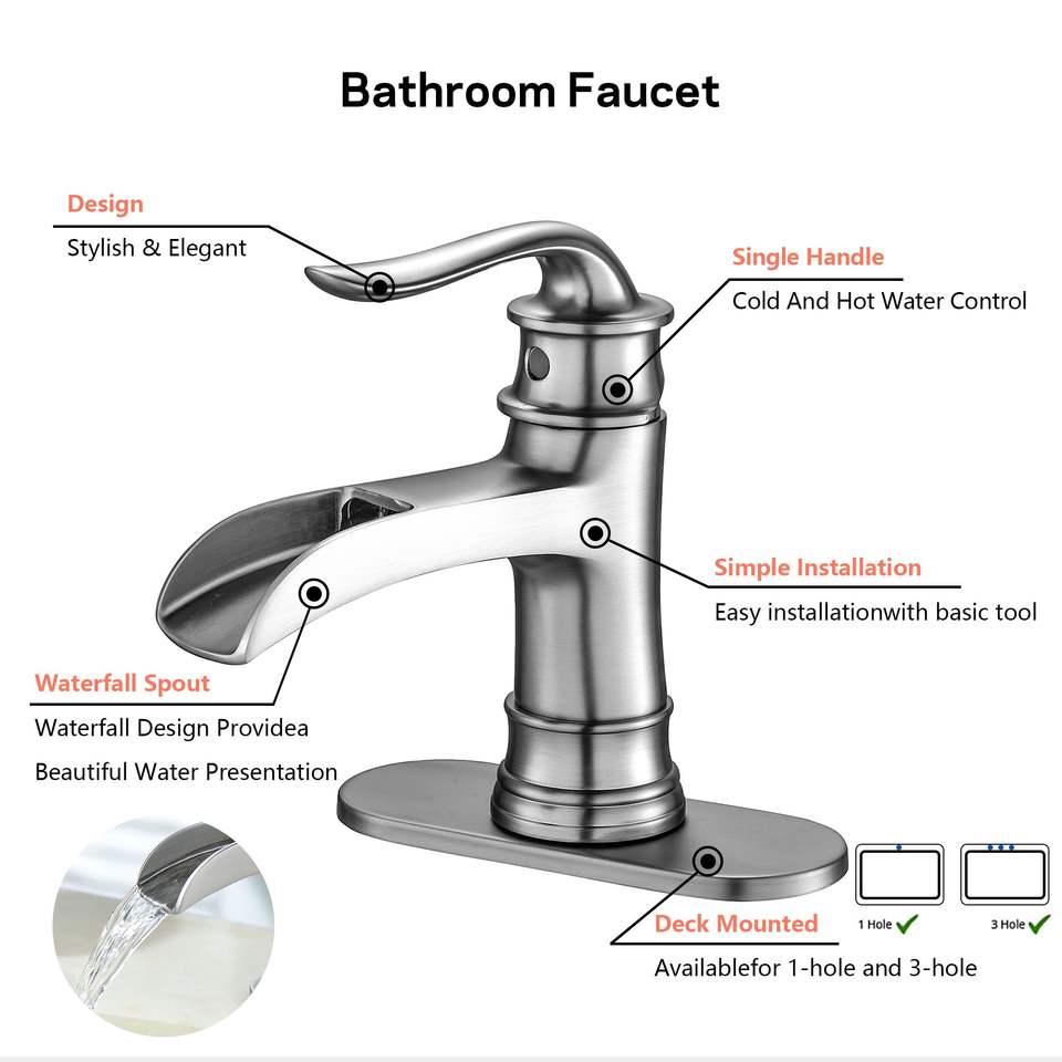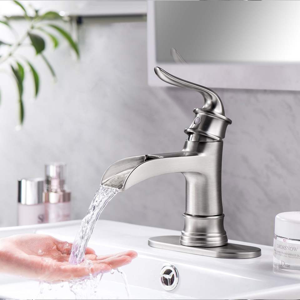 Rubinetto da Bagno Monocomando in Nichel Spazzolato con Scarico a Scomparsa e Design a Cascata per Vasca e Doccia