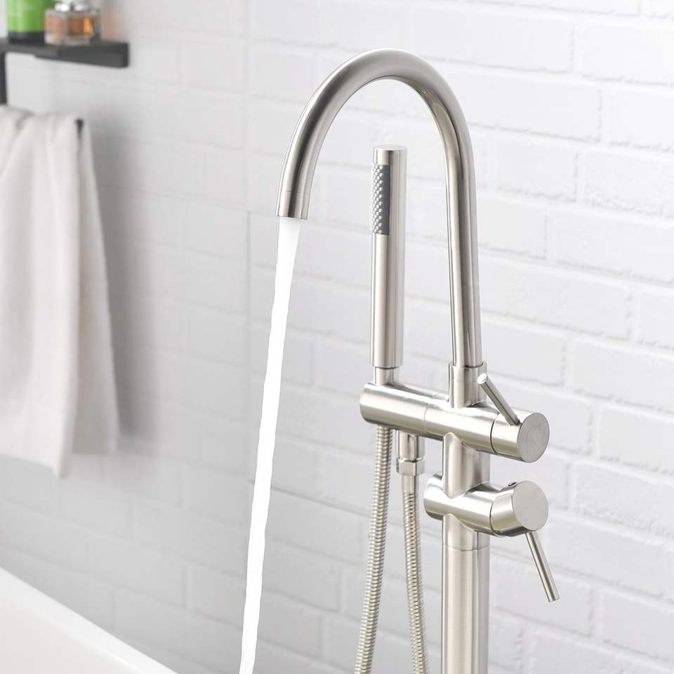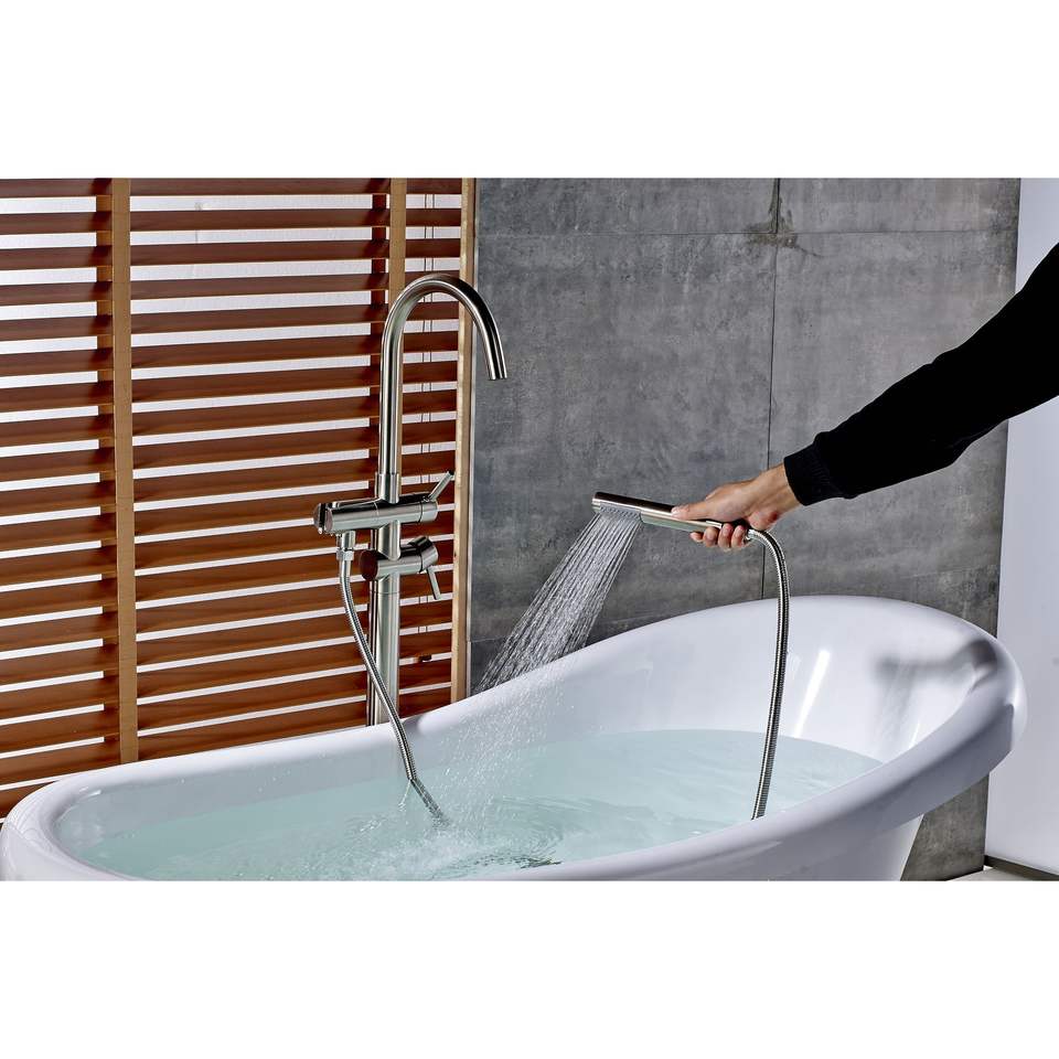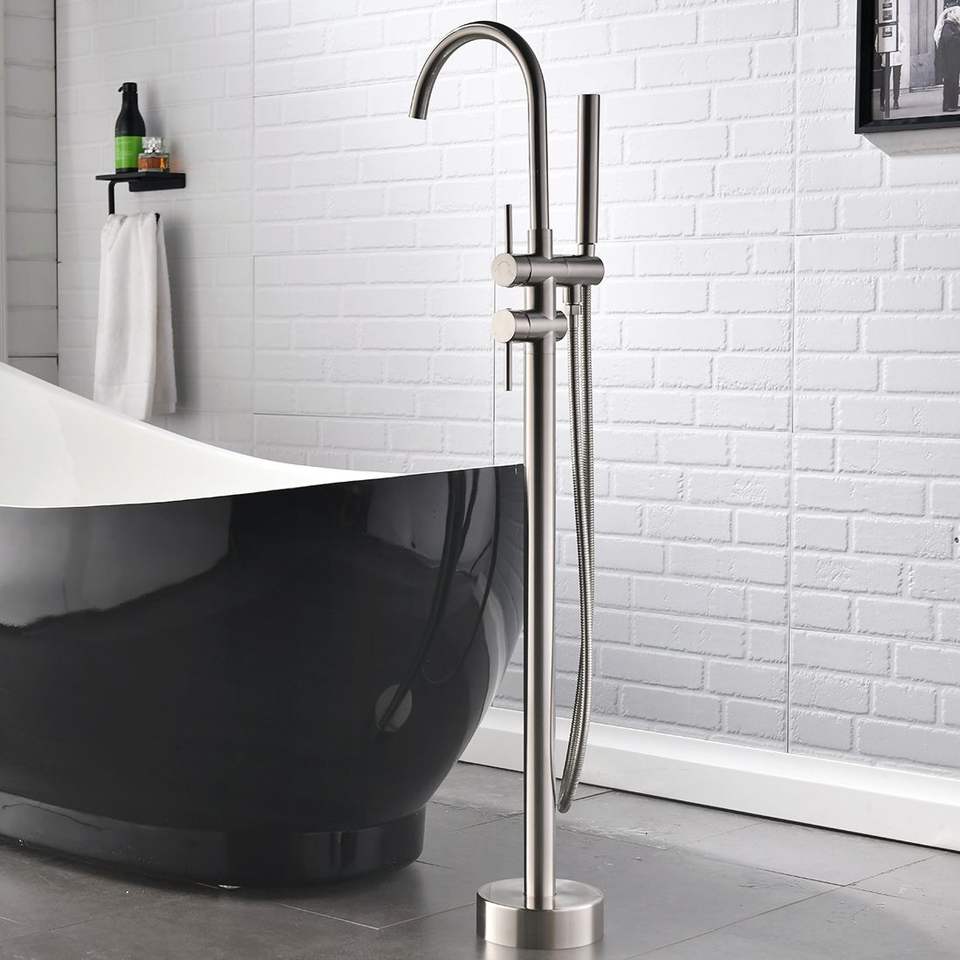 Rubinetto Monocomando per Vasca da Bagno Freestanding e Doccetta a Mano, Montaggio a Pavimento (Nero Spazzolato)