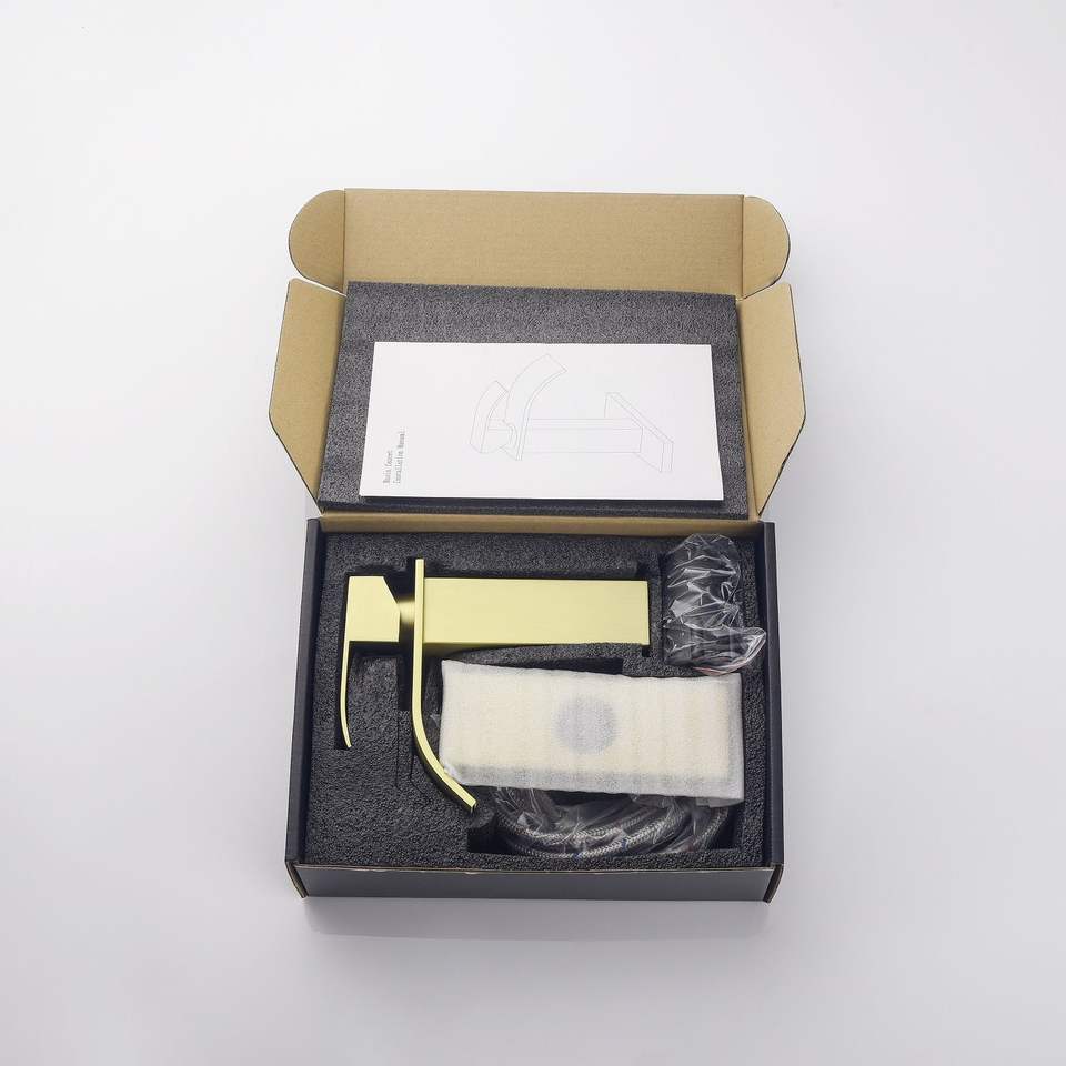 Rubinetto per Lavabo da Bagno con Manico Singolo e Beccuccio a Cascata Dorato per Vasca e Doccia