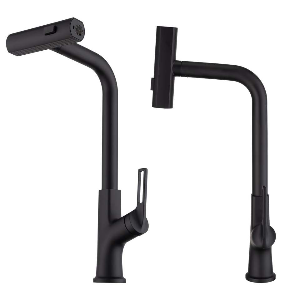 Rubinetto da Cucina Monocomando con Doccetta Estraibile, Rotazione a 360 Gradi, Design a Cascata