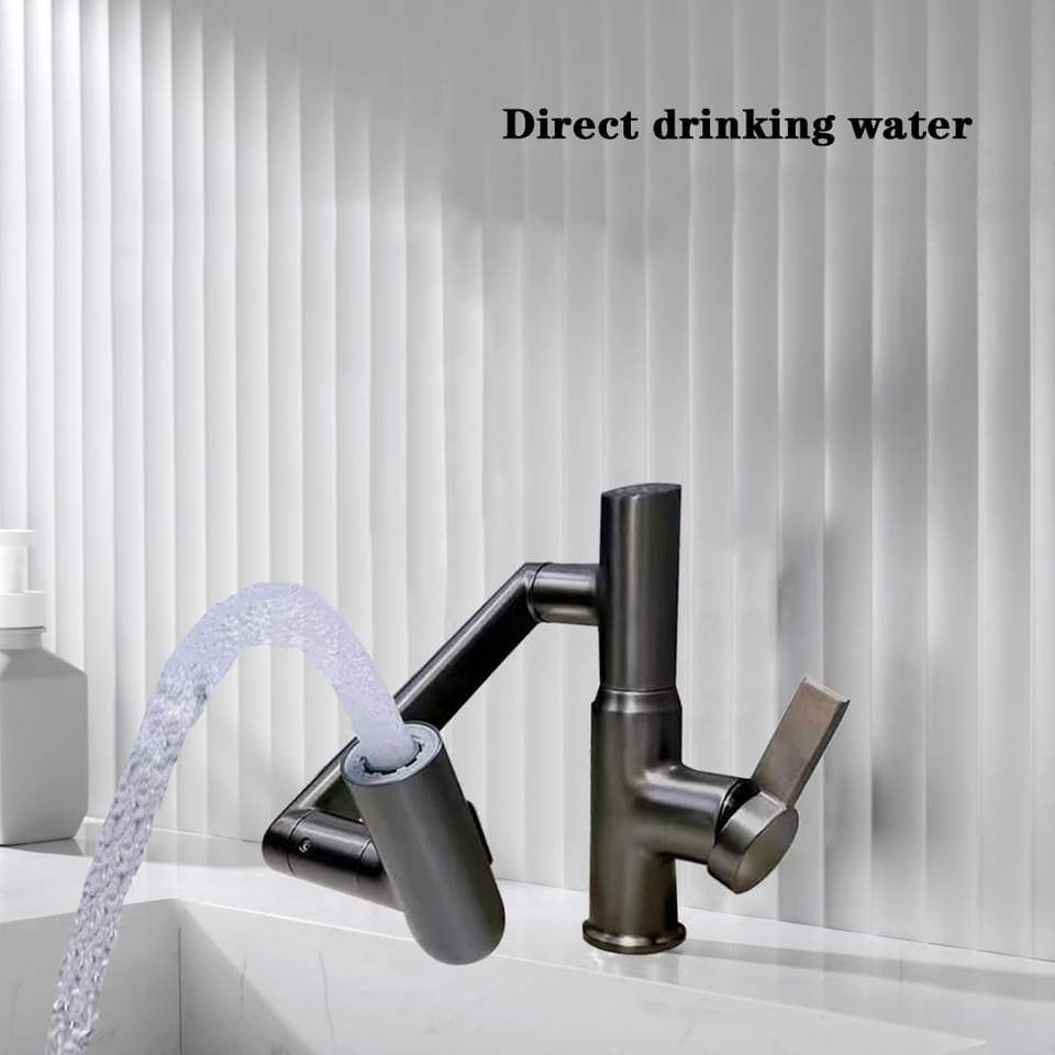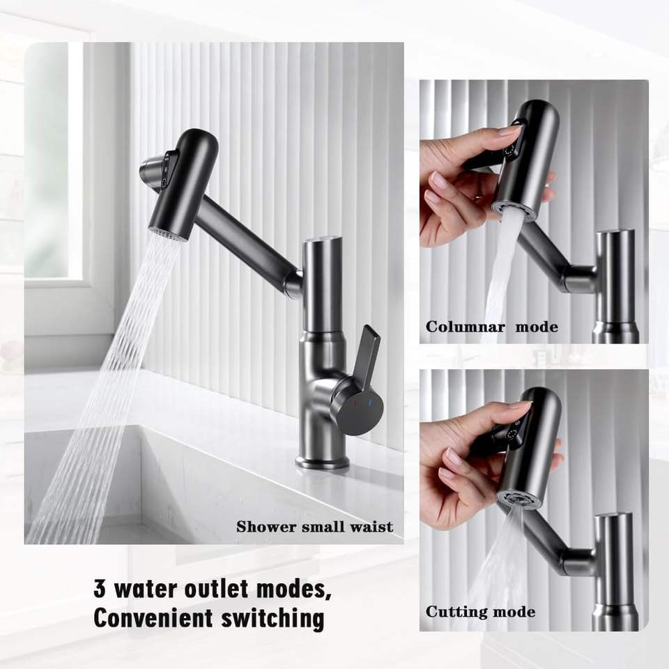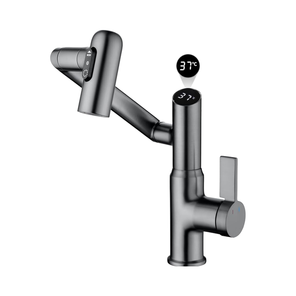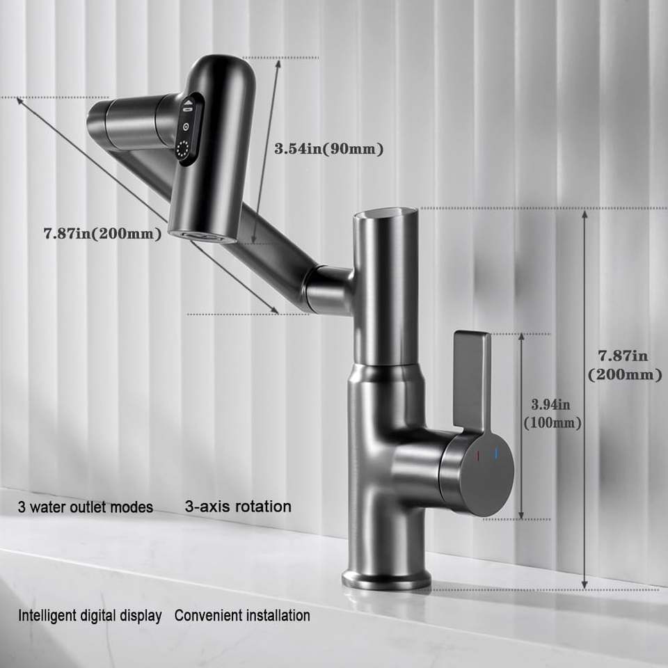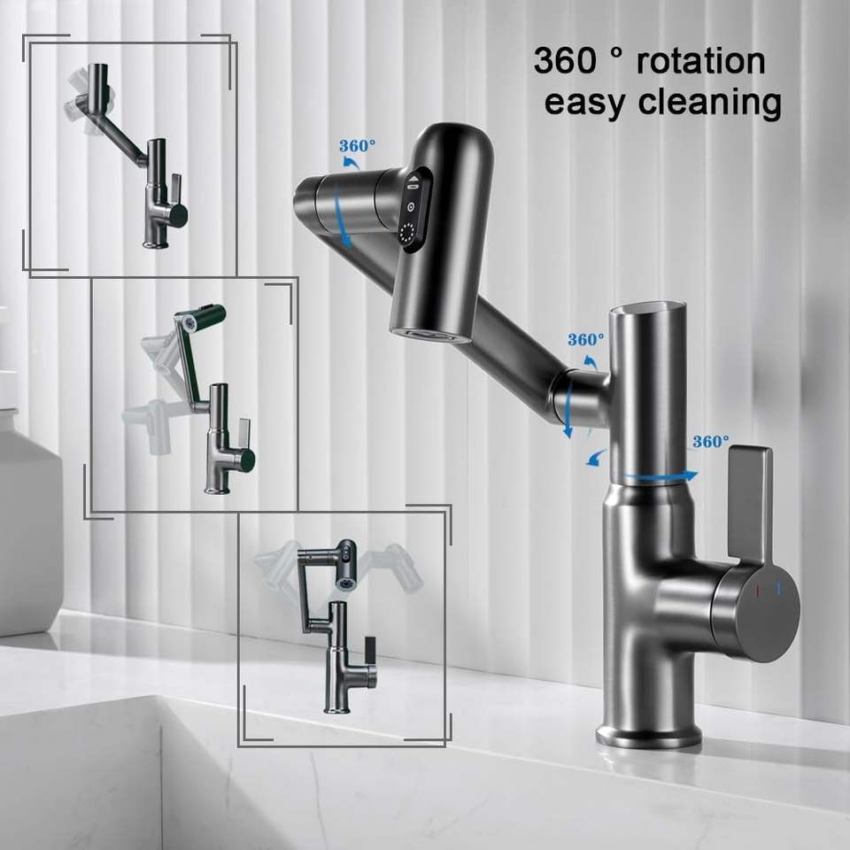 Rubinetto da Bagno Monocomando Moderno con Braccio Robotico Girevole a 1080 Gradi, Montaggio su Piano, Display LED Temperatura in Ceramica, Ottone