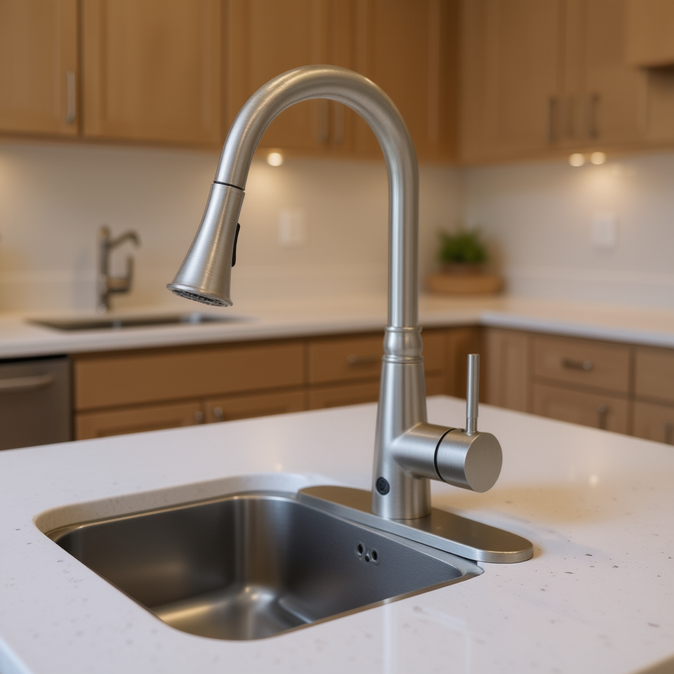 Rubinetto da Cucina Monocomando Estraibile, Design Moderno in Nichel Spazzolato, Montaggio su Piano in Acciaio Inox, Altezza 8-9.9 Pollici