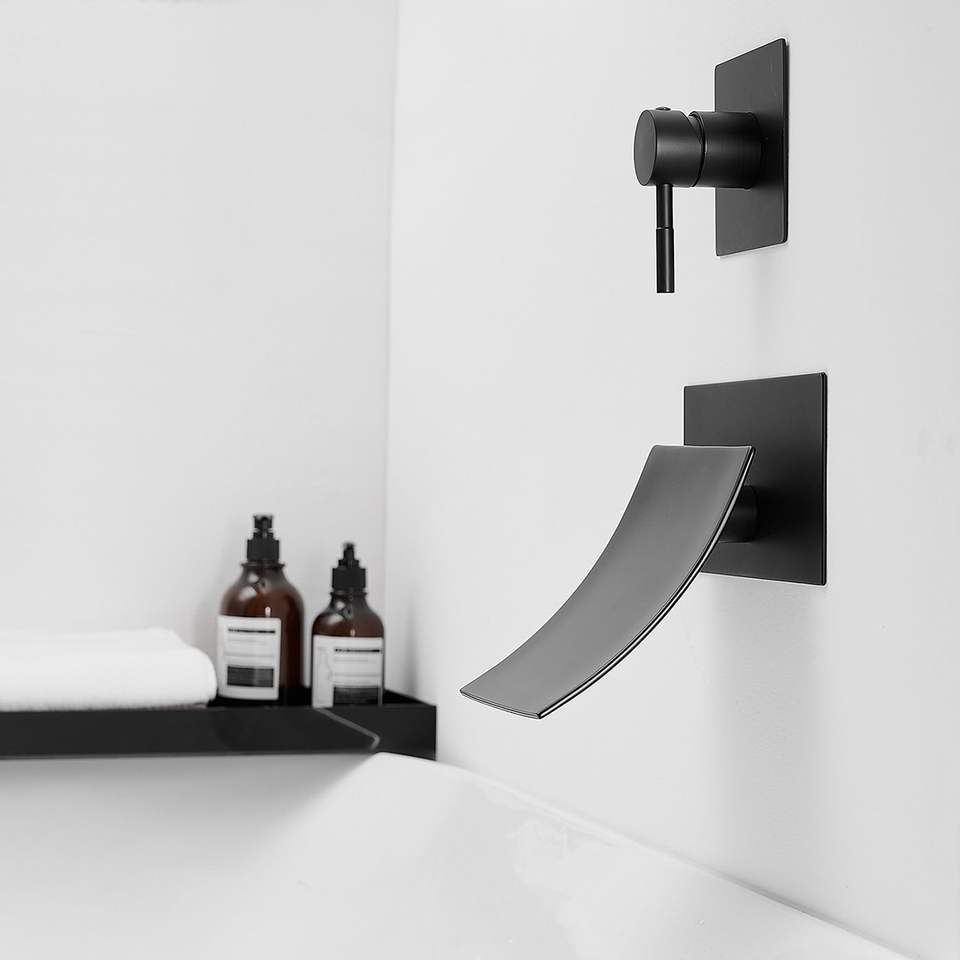 Rubinetto da bagno a cascata con supporto a parete a manico singolo in rubinetti da bagno e doccia in nichel spazzolato