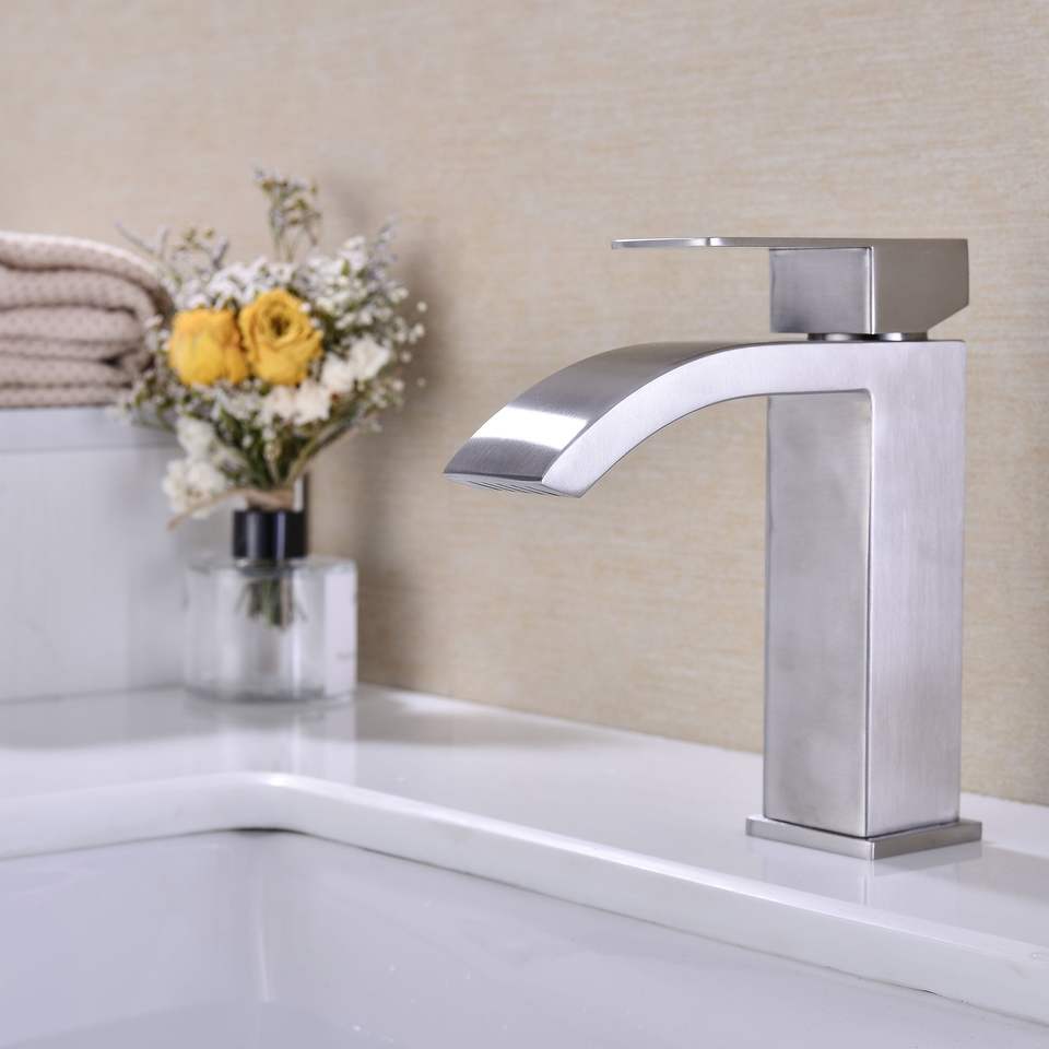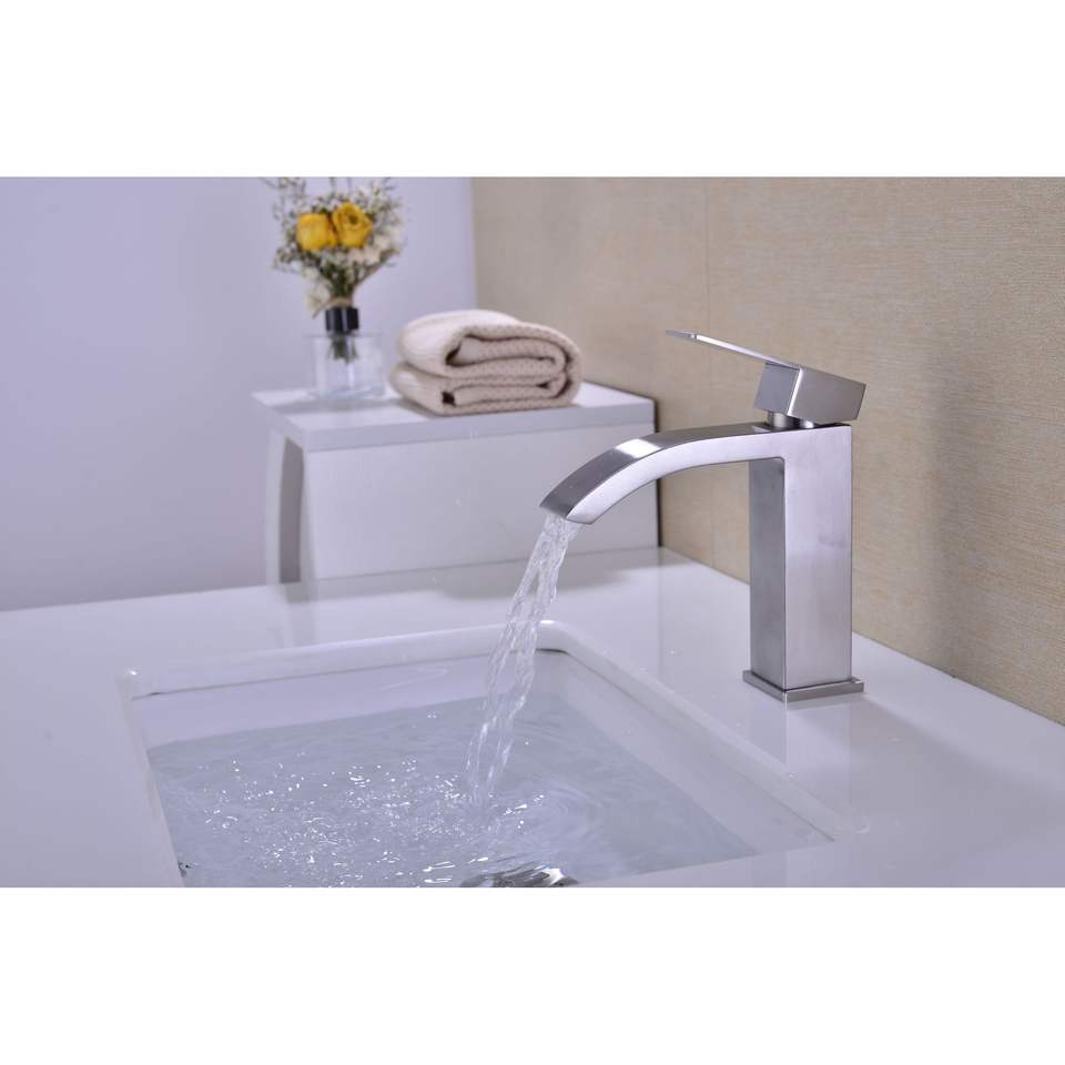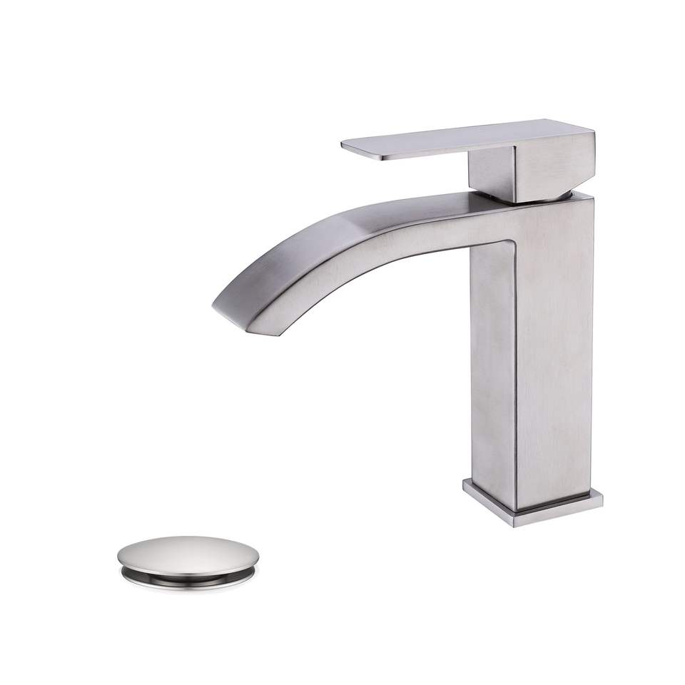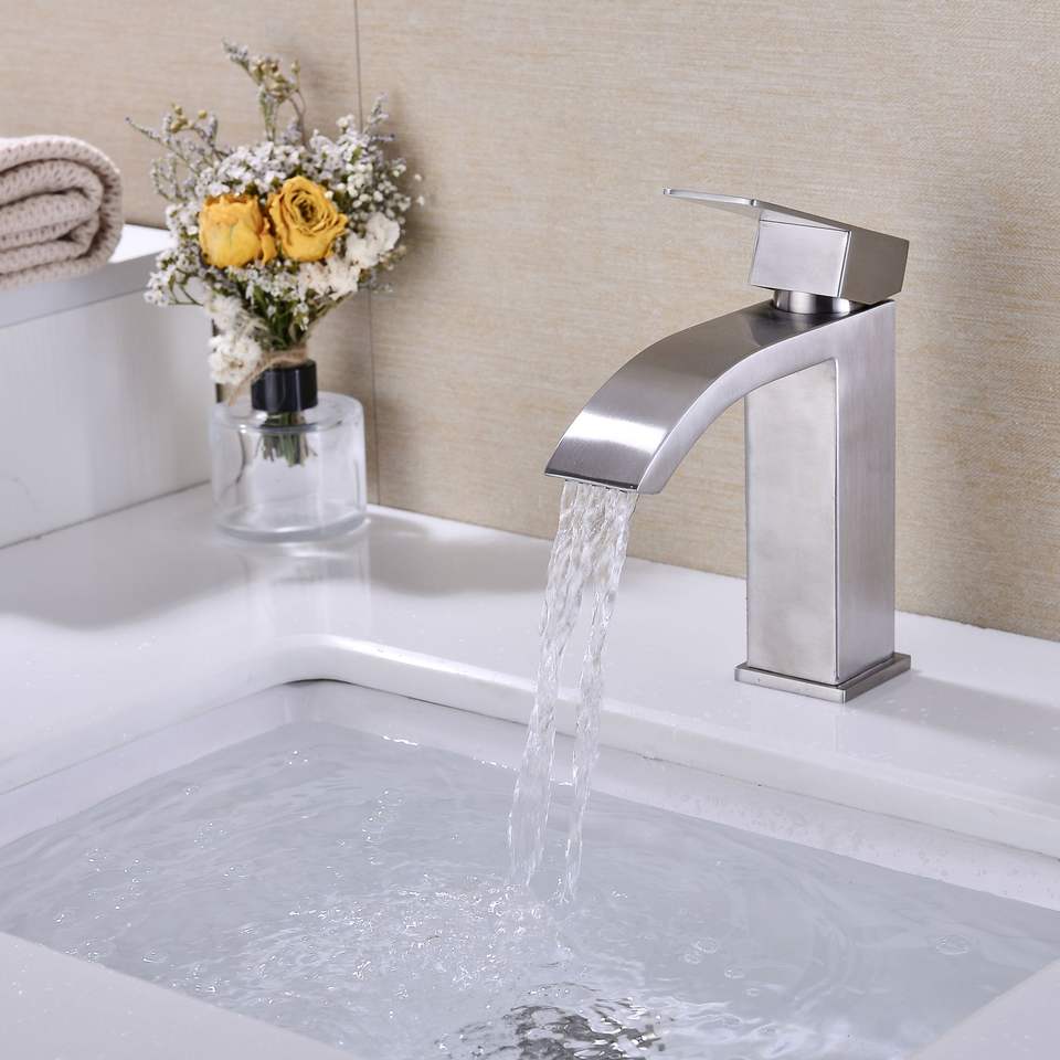 Rubinetto Monocomando a Cascata per Lavabo Bagno con Scarico a Scomparsa e Troppopieno