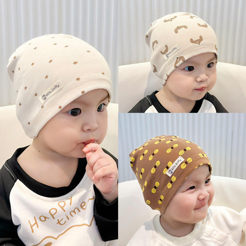 Cappello da bambino primavera autunno sottile monostrato cappello da bambino in cotone lavorato a maglia in cotone traspirante bandane etniche stampate con motivo animale dei cartoni animati