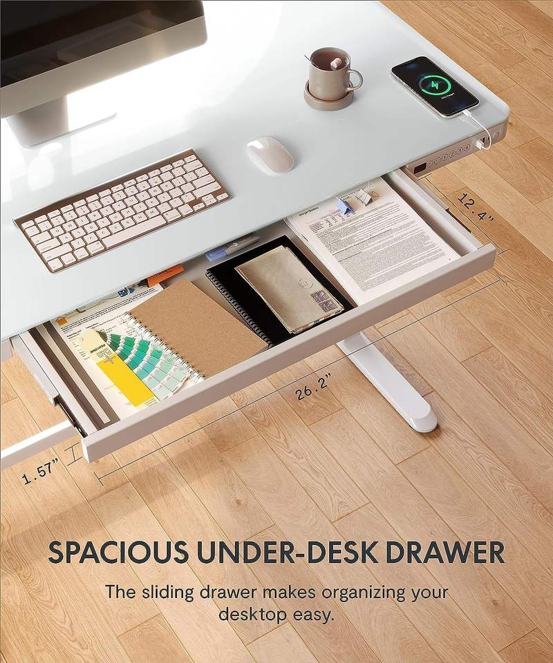 Scrivania elettrica in vetro a motore singolo con cassetti scrivania elettrica regolabile in altezza scrivania per Computer da ufficio a casa