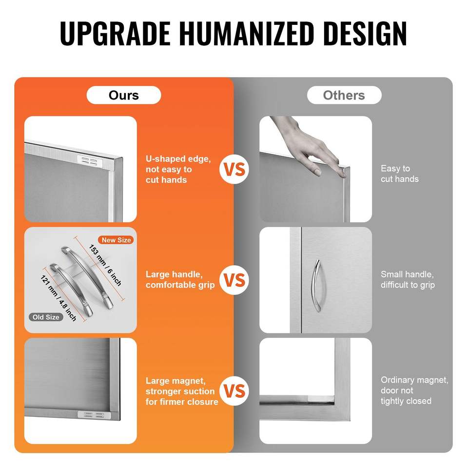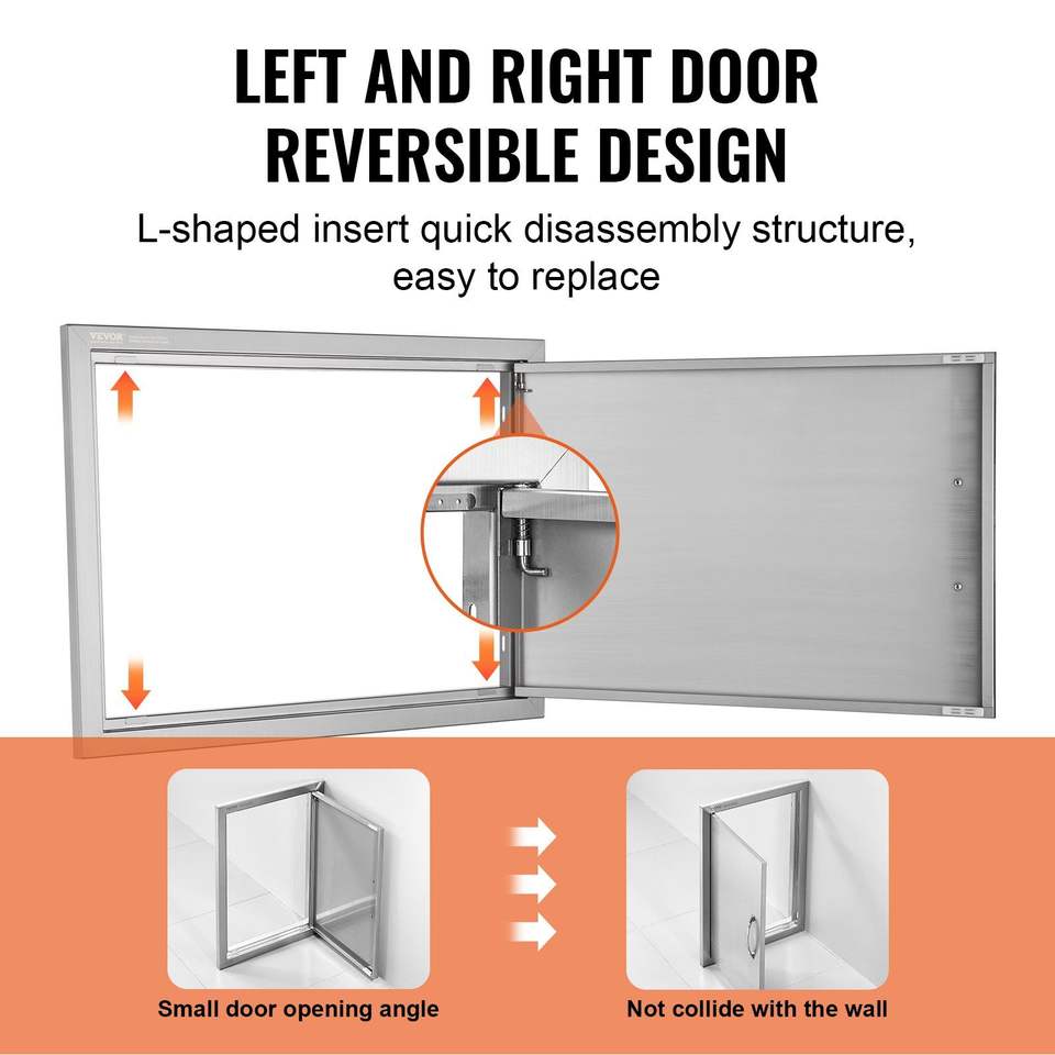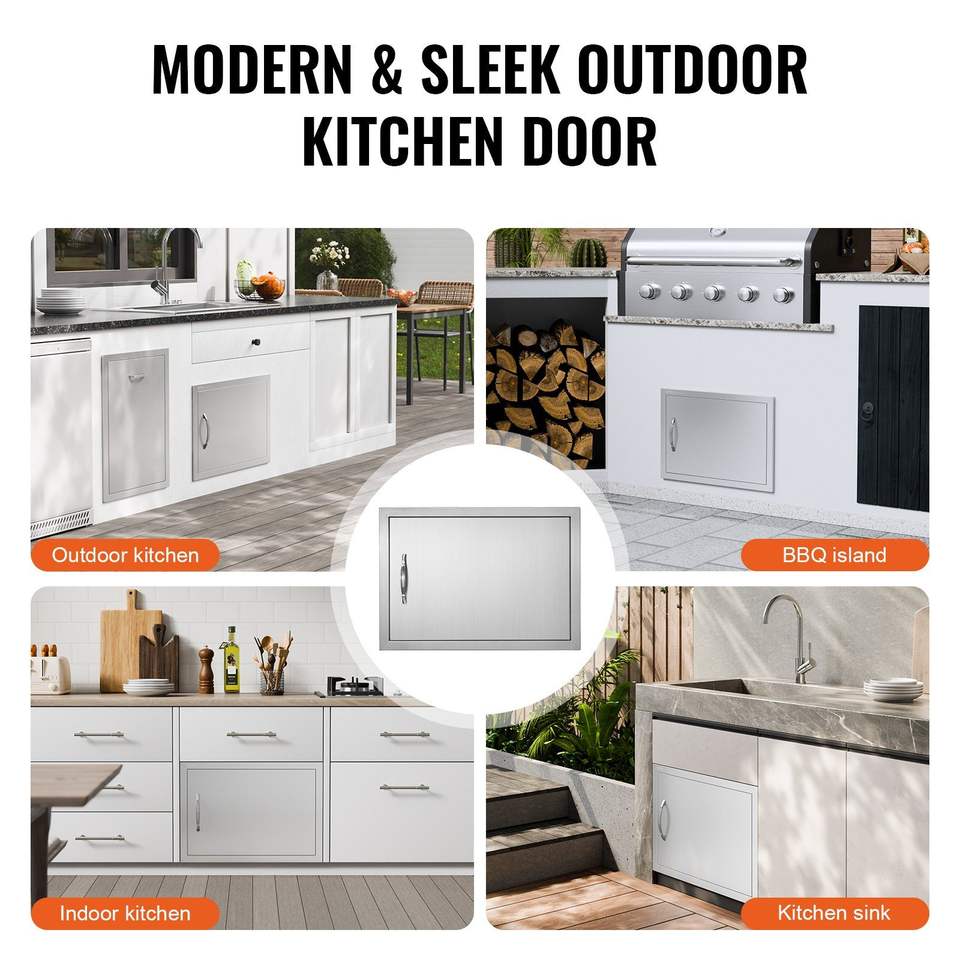 Porta di Accesso BBQ da Incasso Singola per Cucina Esterna in Acciaio Inossidabile 24W X 17H Pollici con Maniglia Verticale e Soluzione di Stoccaggio