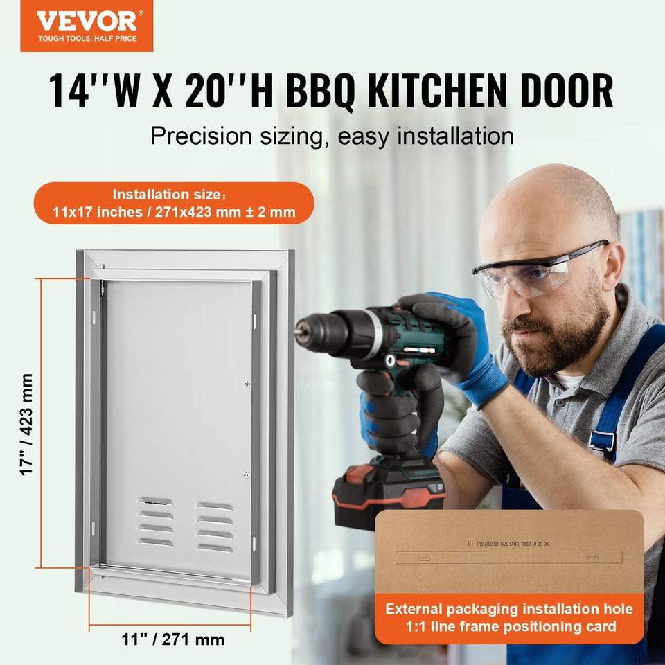 Porta Singola per Cucina Esterna in Acciaio Inox 14L x 20A Pollici, Montaggio a Filo per Accesso BBQ con Maniglia Verticale