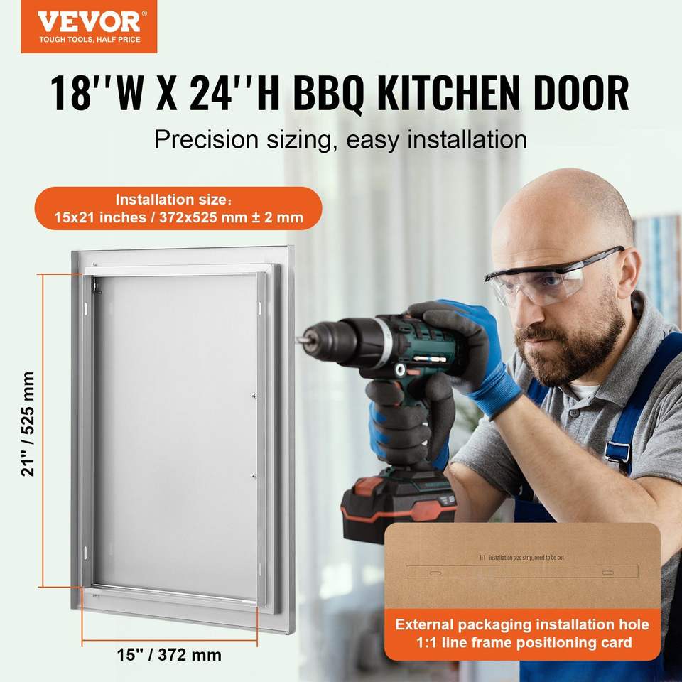 Porta a filo muro singola per cucina esterna in acciaio inossidabile 18L x 24A pollici, porta di accesso BBQ con maniglia verticale, accessori BBQ da parete