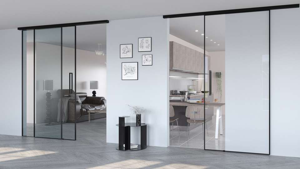 La porta scorrevole in stile fienile con porta in vetro a pannello singolo può essere una porta da fienile elettrica lateralmente con chiusura ammortizzata incorporata