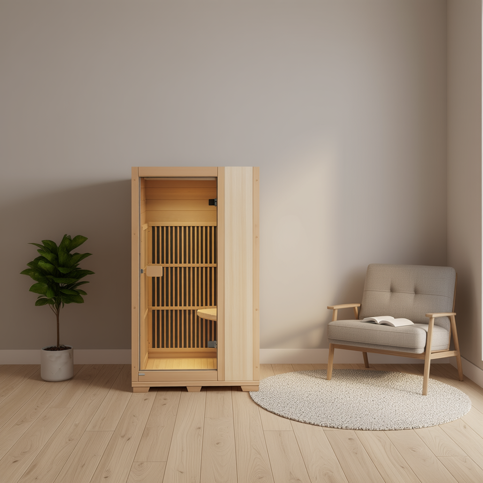 Single Person Home Sauna Spa 1140W Far Infrared LED Hemlock Wood Indoor Use Modern Design