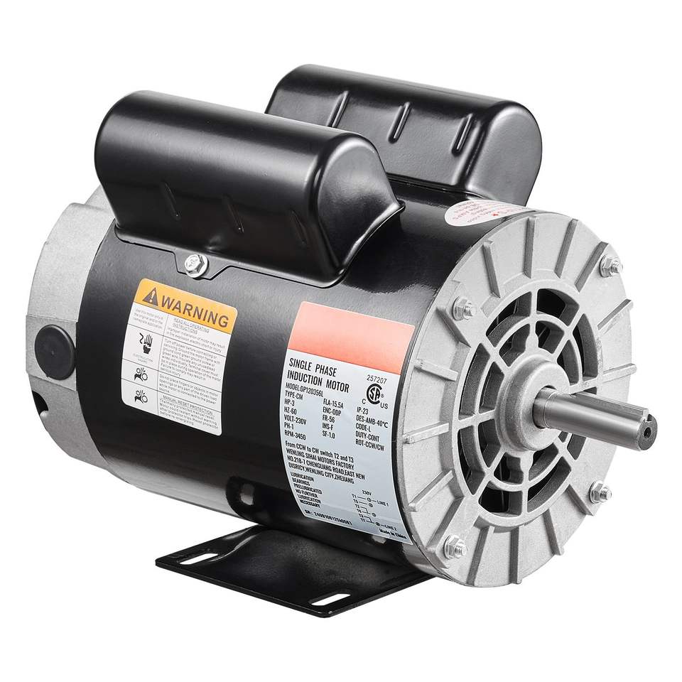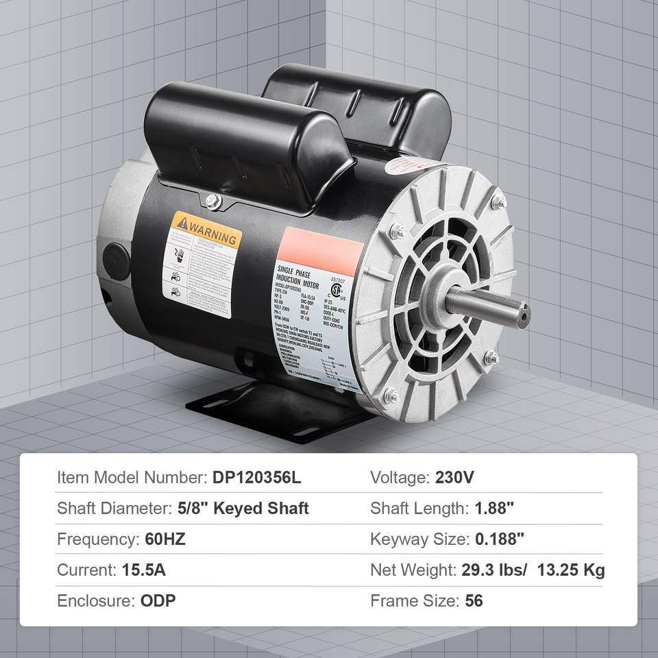 Single Phase 3HP Electric AC Motor 230V 15.5 Amps 56 Frame 3450RPM Speed 5/8\" Keyed Shaft 1.88\" Length CW/CCW Rotation