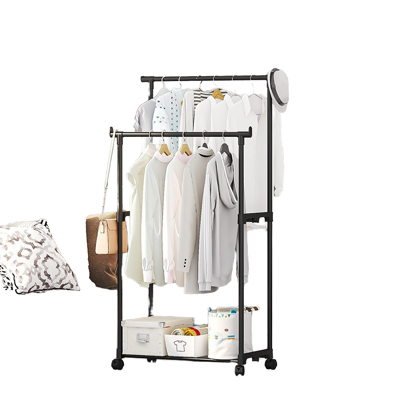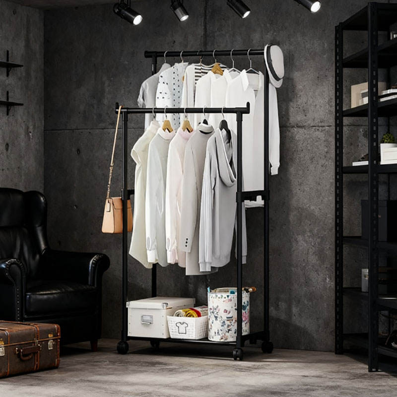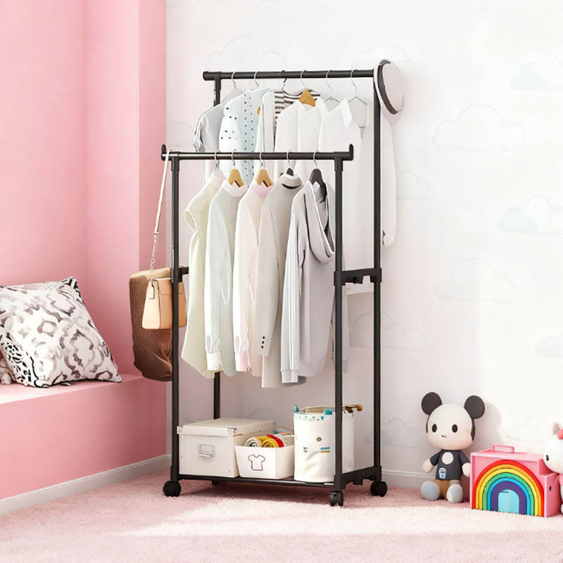 Appendiabiti su Ruote a Palo Singolo, Organizzatore per Vestiti e Cappelli, Asciugabiancheria Integrato, Guardaroba per Soggiorno, Montaggio Semplice