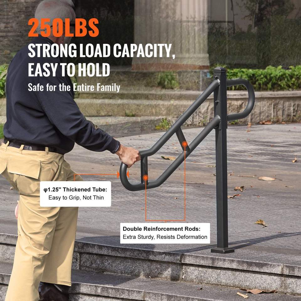 Corrimano singolo in acciaio al carbonio a montaggio a pavimento per esterni, per 1-3 gradini, 103 cm L x 90 cm H, dispositivo di assistenza per scale piegate