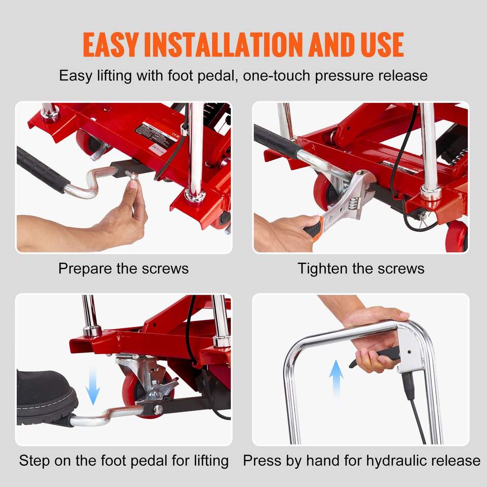 Carrello Elevatore Idraulico Manuale a Forbice Singola, Capacità 227 kg, Altezza di Sollevamento 72,4 cm, 4 Ruote Antiscivolo in PA per Carico Merci