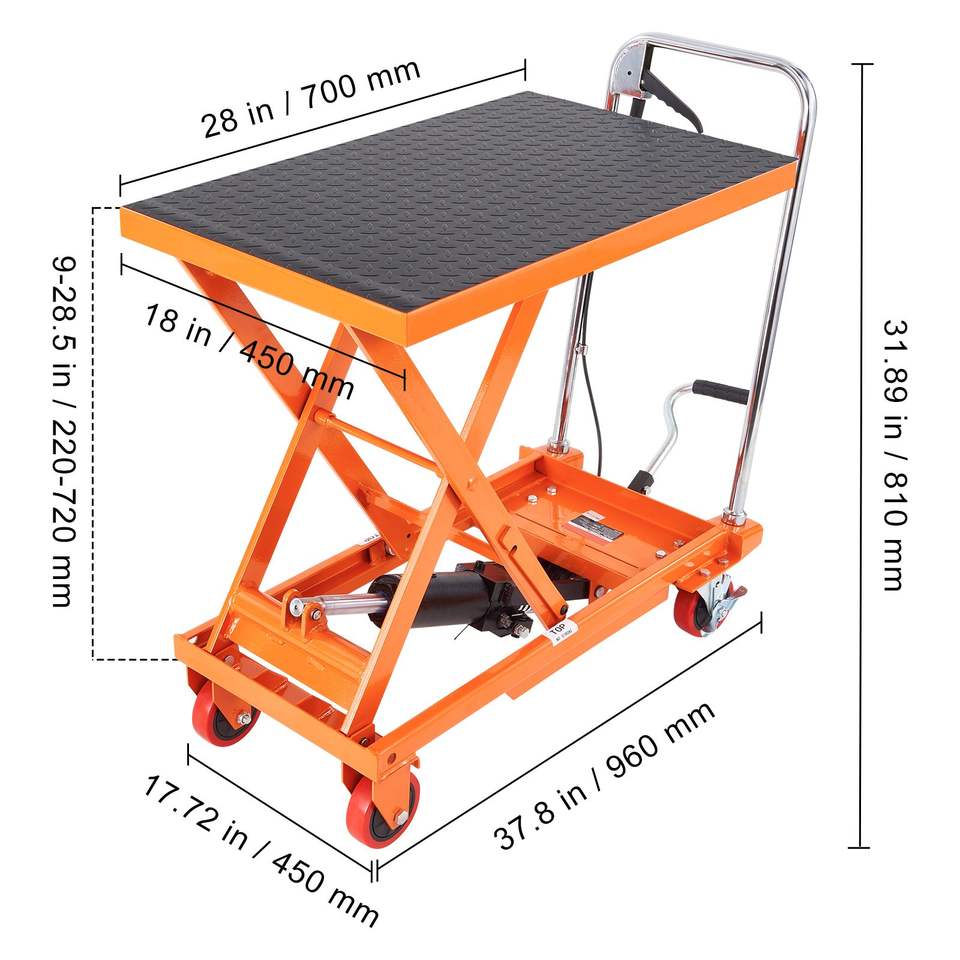 Carrello Elevatore Idraulico Manuale a Forbice Singola, Capacità 227 kg, con 4 Ruote Antiscivolo in PA, Altezza di Sollevamento 72,4 cm