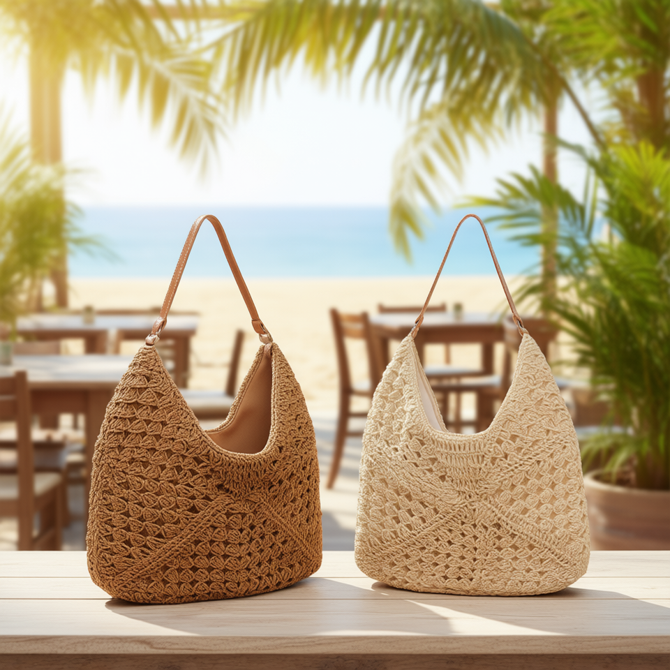 Borsa a Tracolla in Carta Intrecciata Monocolore 35x36x25cm, Borsa alla Moda per Donna