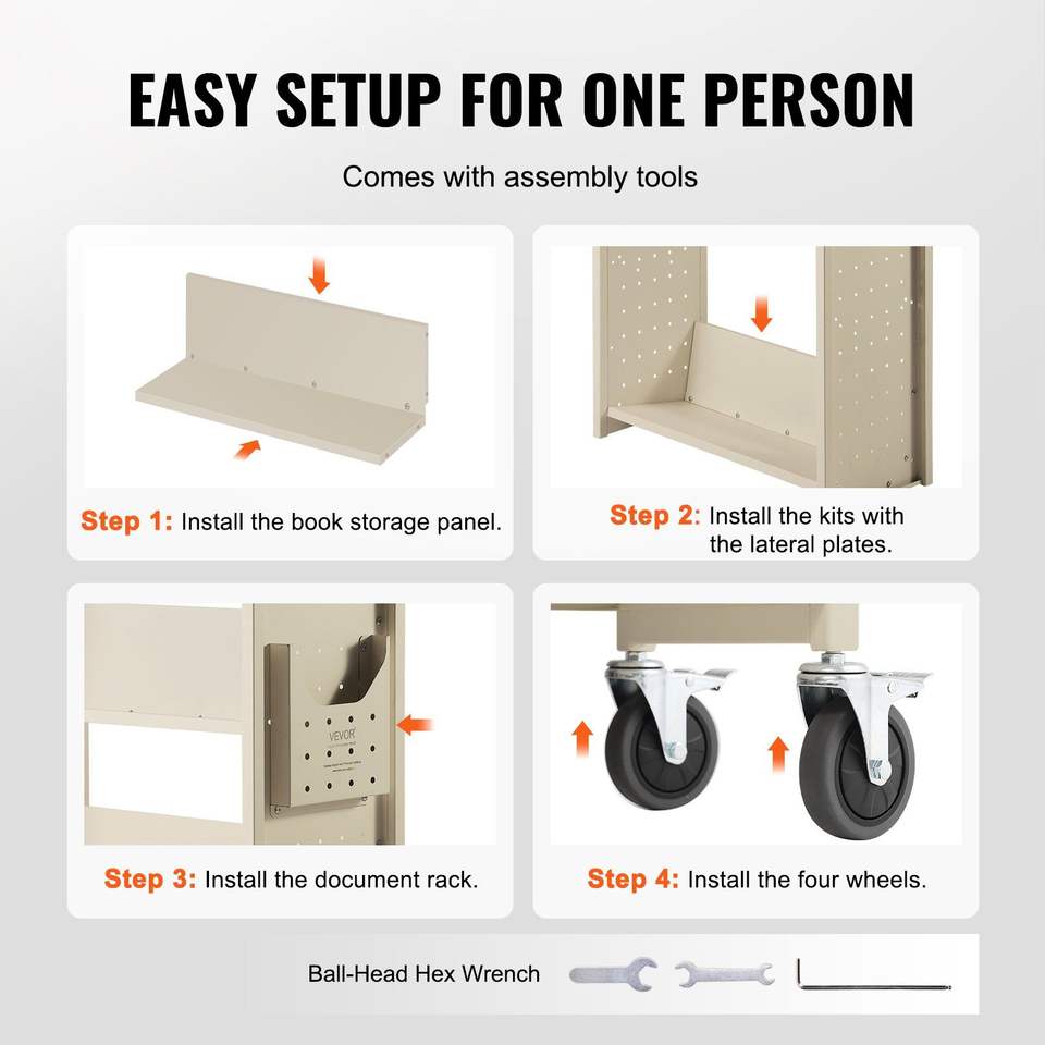 Carrello Porta Libri Monofacciale da 150 kg, 79,5 cm x 38,7 cm x 124,9 cm, Mobile da Biblioteca con Ruote, Ripiani Inclinati a V da 10 cm con Blocco, Capacità 140 kg