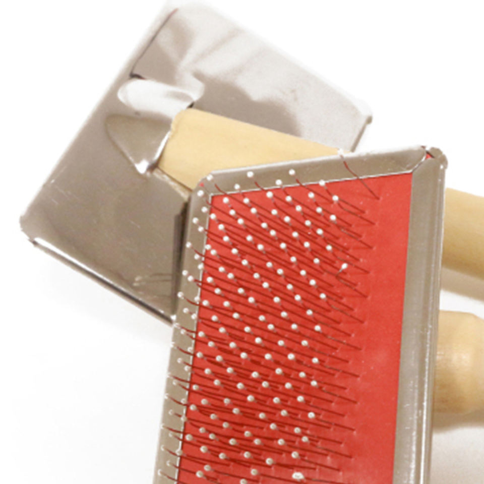 Spazzola in acciaio inossidabile a setole singole, pettine in legno denso 11,3*5,8 cm per la toelettatura degli animali domestici