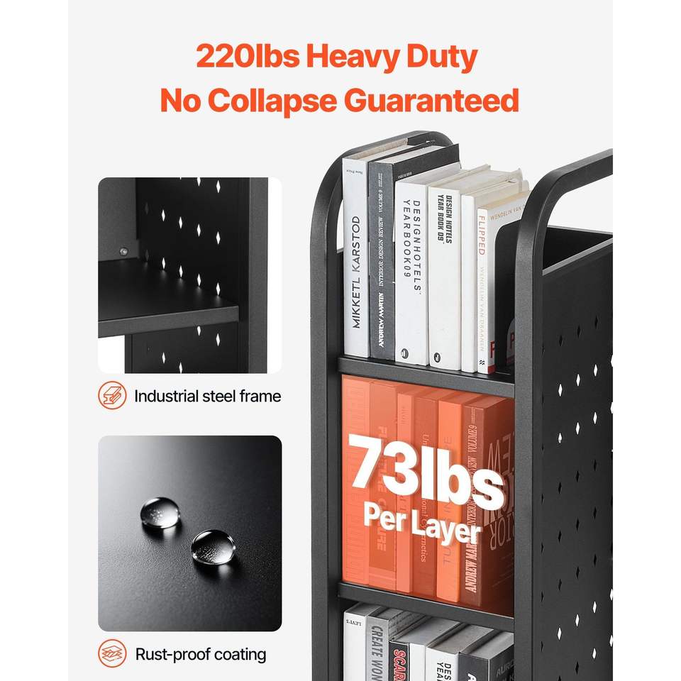 Carrello Porta Libri a L Monofacciale con Ruote, Capacità 100 kg, 32x35x93 cm