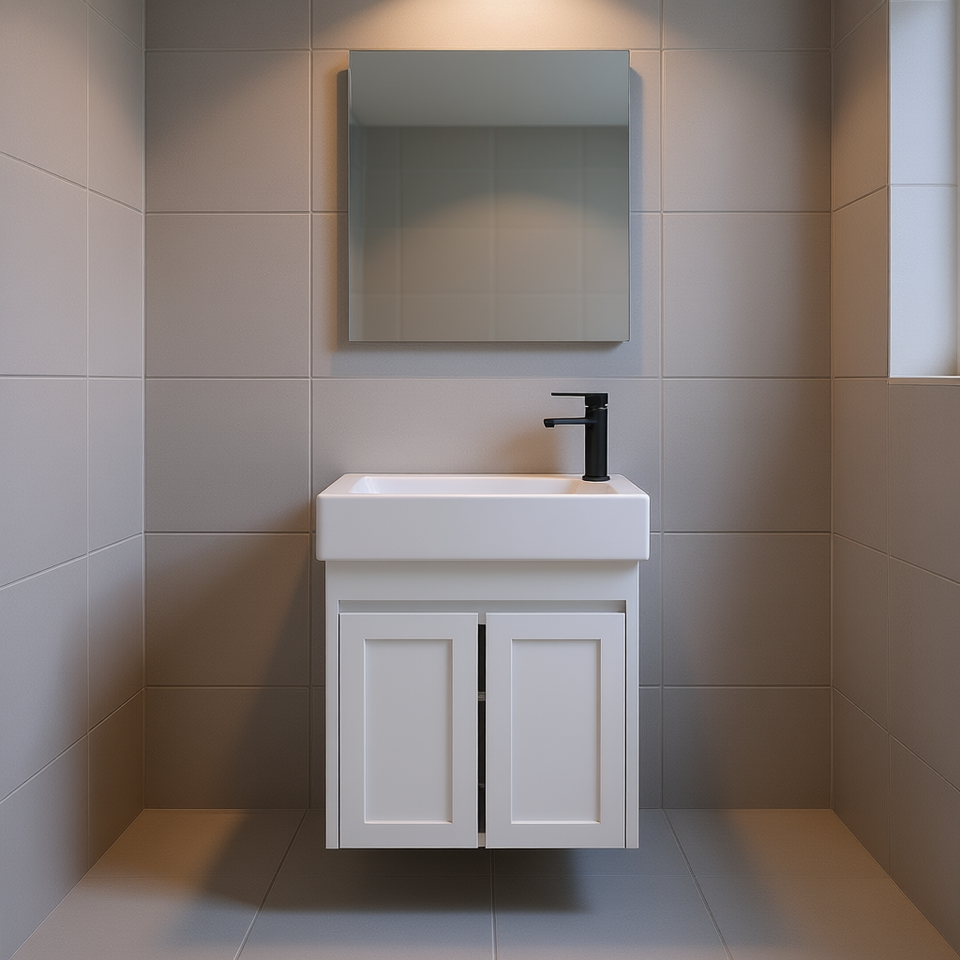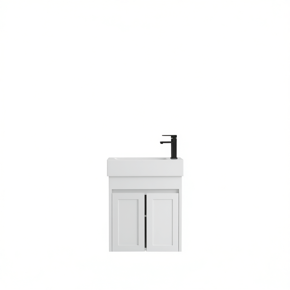 Mobile Bagno Bianco con Lavabo Singolo, Ante con Chiusura Ammortizzata da 18 Pollici, Design Moderno, Mobile Rettangolare in MDF da Terra