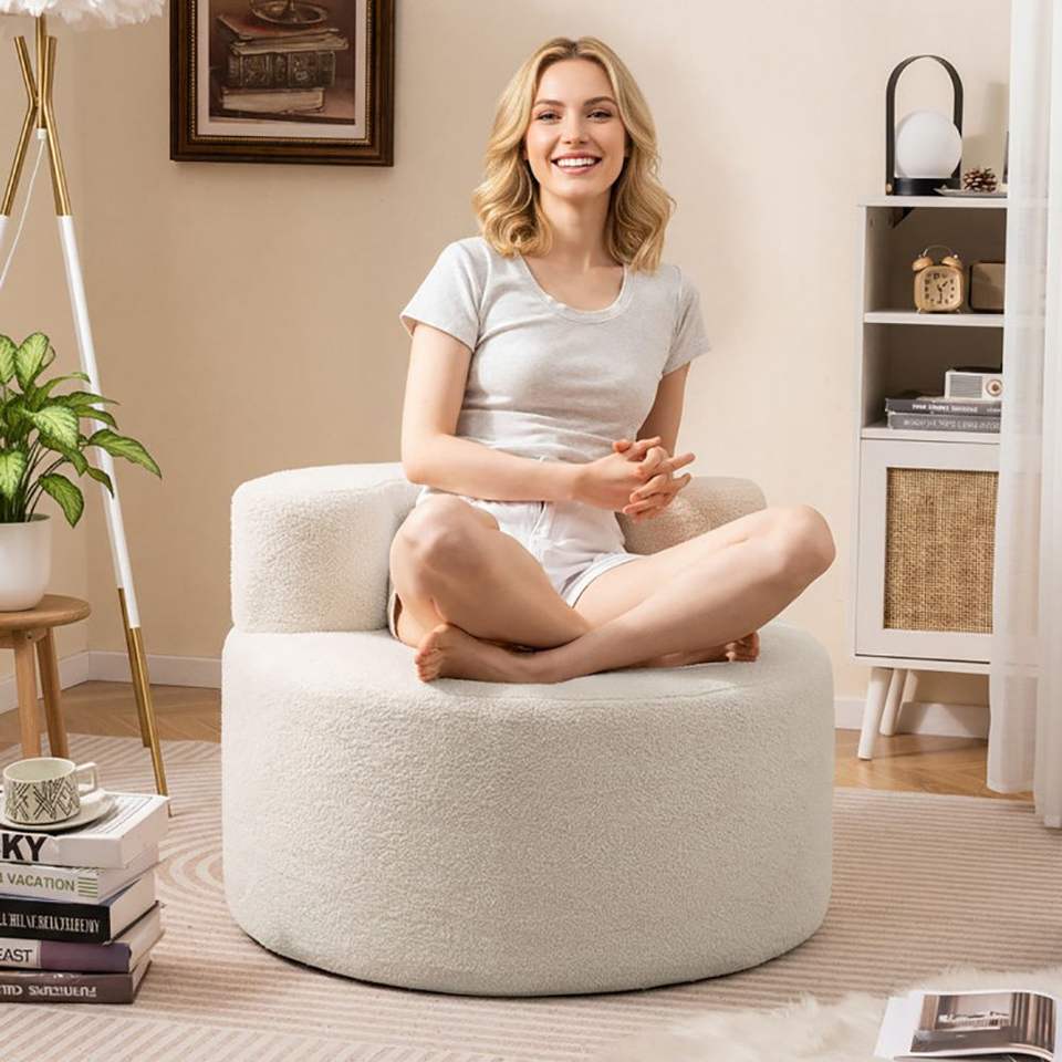 Poltrona Singola a Forma di Luna in Morbido Pile Teddy per Soggiorno