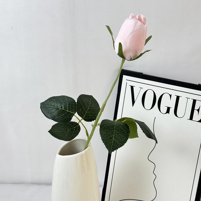 Rosa singola in gomma morbida, fiore artificiale per decorazioni nuziali, arte floreale, fiore finto per la casa, bouquet da sposa, oggetti di scena per fotografia, sala ricevimenti