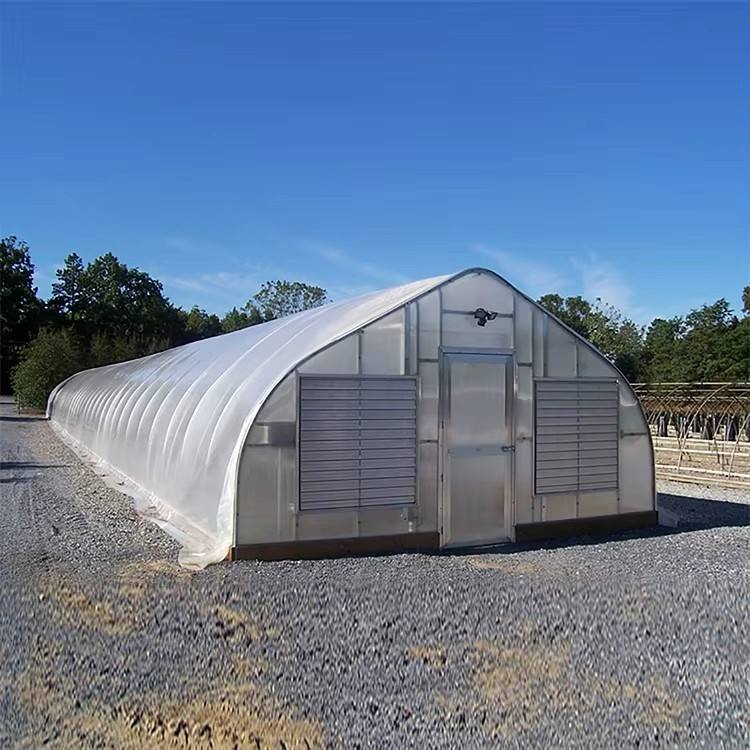 Serra in pellicola di plastica a campata singola con Auto-ventilazione, irrigazione a goccia e pellicola resistente ai raggi UV per la coltivazione di ortaggi