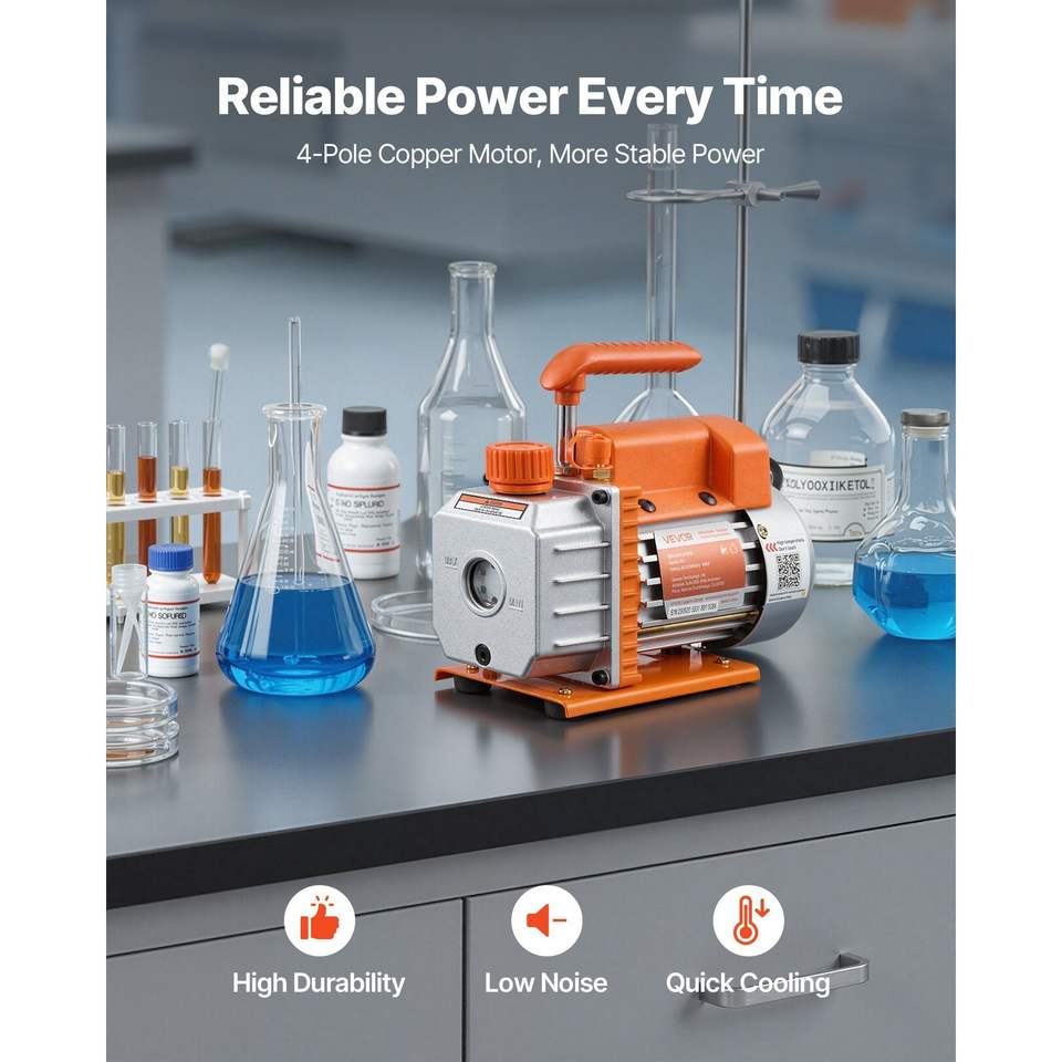 Pompa per vuoto monostadio da 3,5 CFM, kit camera di degassificazione in acciaio inossidabile, camera a vuoto in vetro temperato da 3 galloni, recipienti a pressione