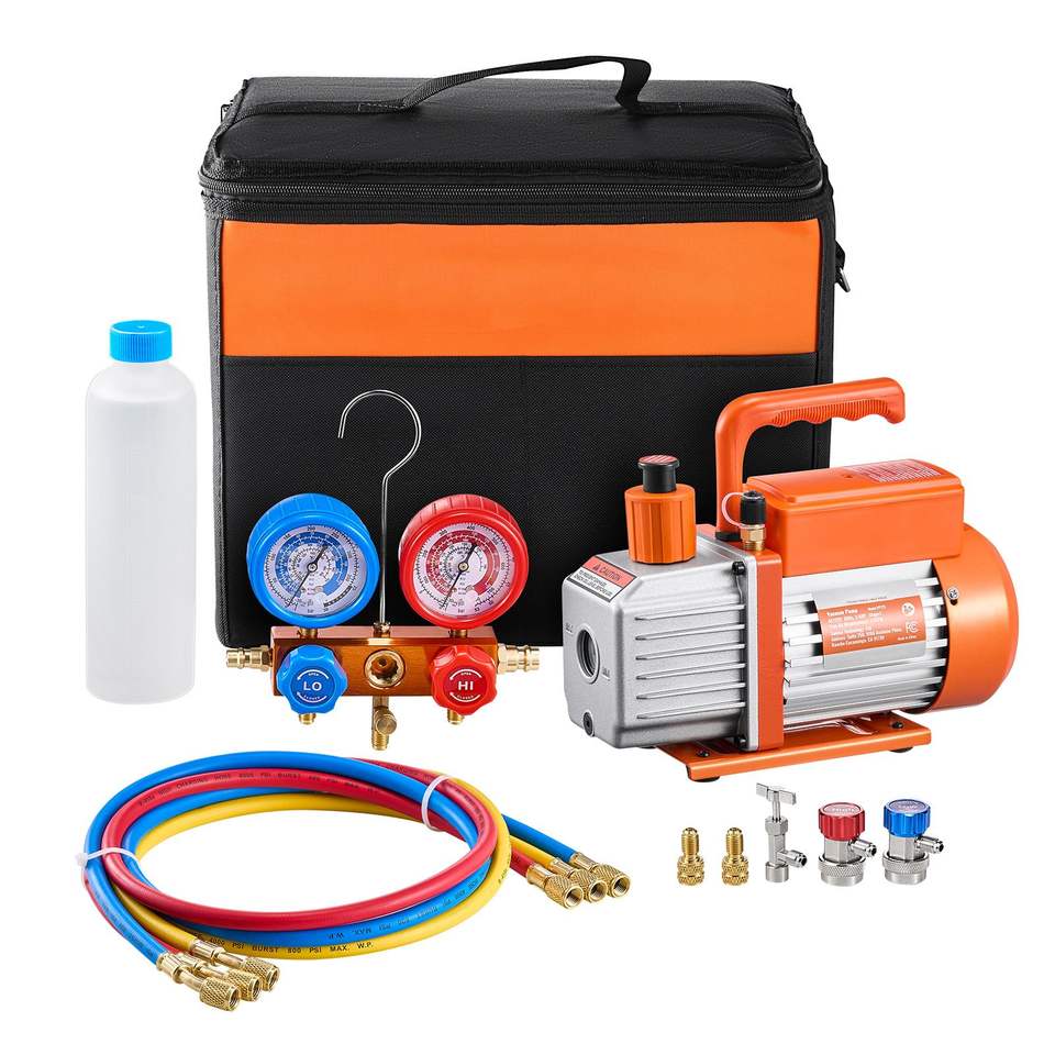 Pompa per vuoto HVAC a palette rotative monostadio 3.5 CFM con kit manometri AC H per set di manometri per pompa refrigerante A/C