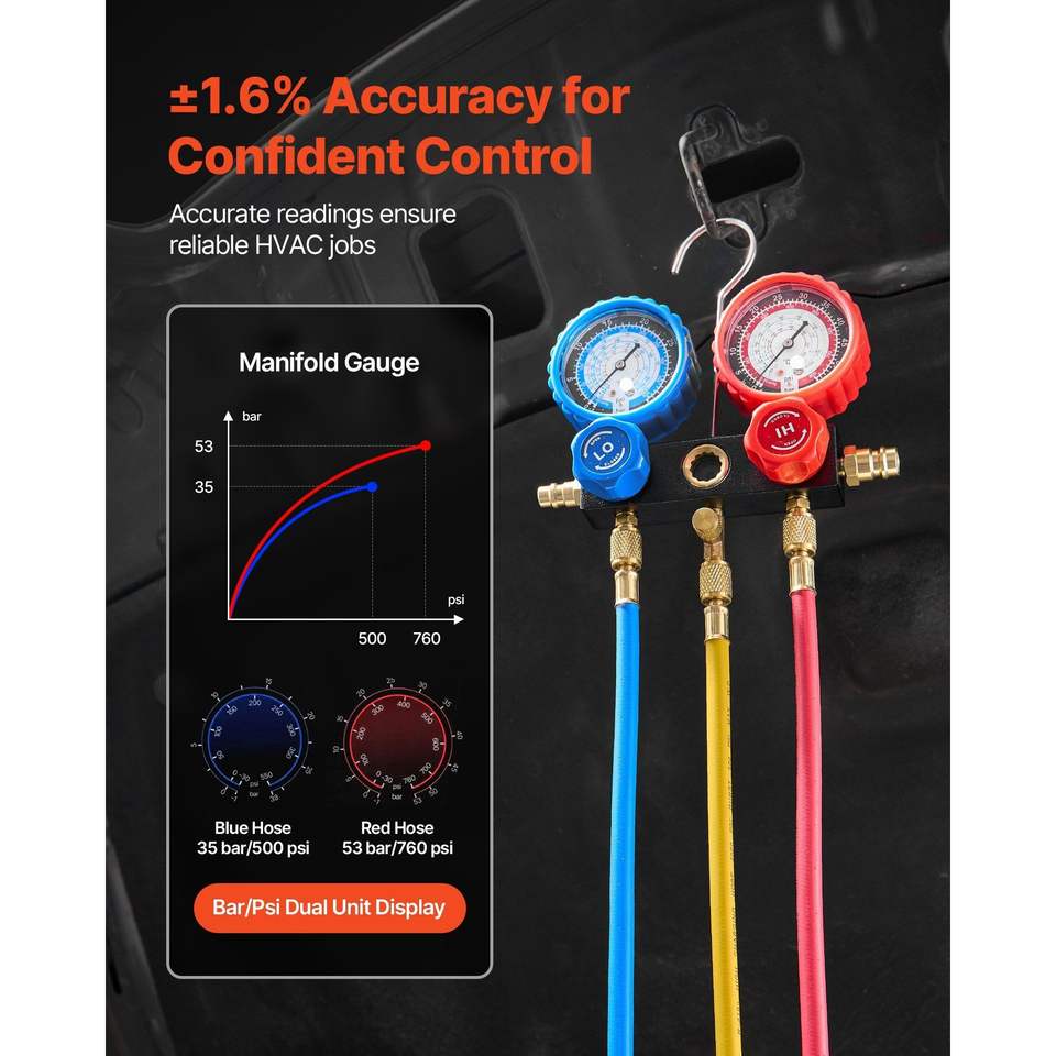 Pompa per vuoto HVAC a palette rotative monostadio 4.5 CFM 1/3 HP, kit manometri AC, set manometri per pompa per vuoto AC per R134a R22