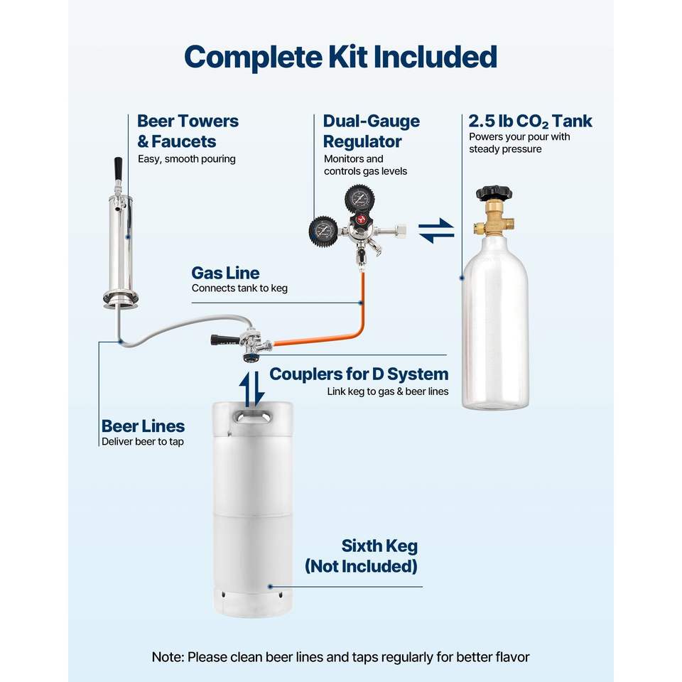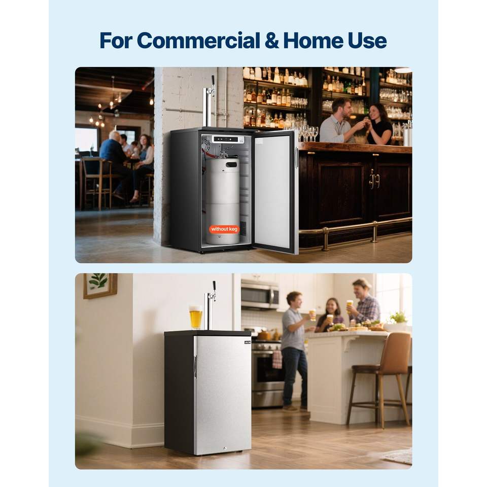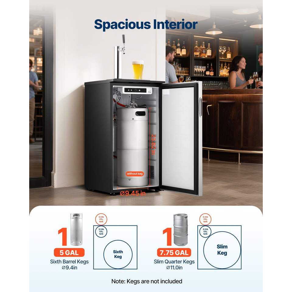 Dispenser di Birra Commerciale a Singola Rubinetto con 1 Fusto da 1/6 e Porta CO da 2,5 libbre, Scaffali Refrigerati, Kegerator per Birra