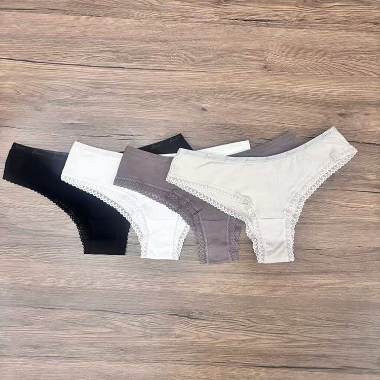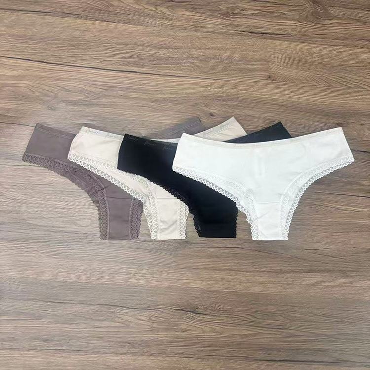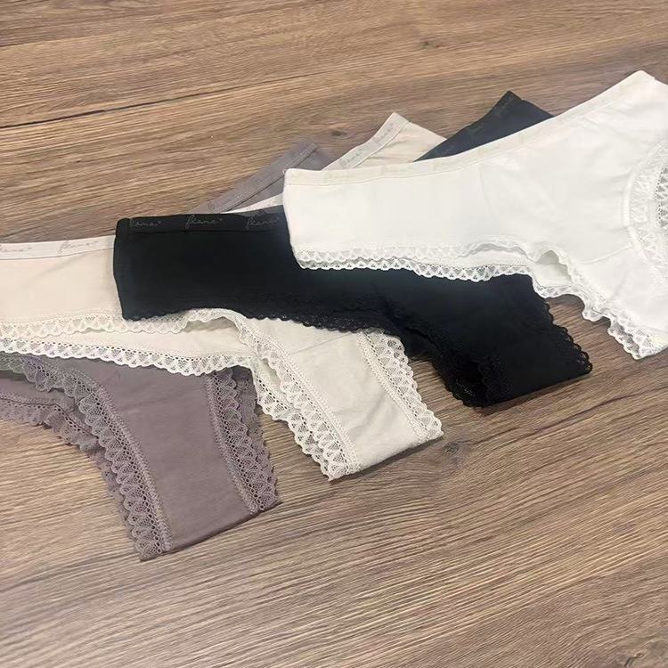 Slip da donna a vita bassa con bordo decorato, traspirante, con pizzo delicato, a mezza copertura, per giovani donne